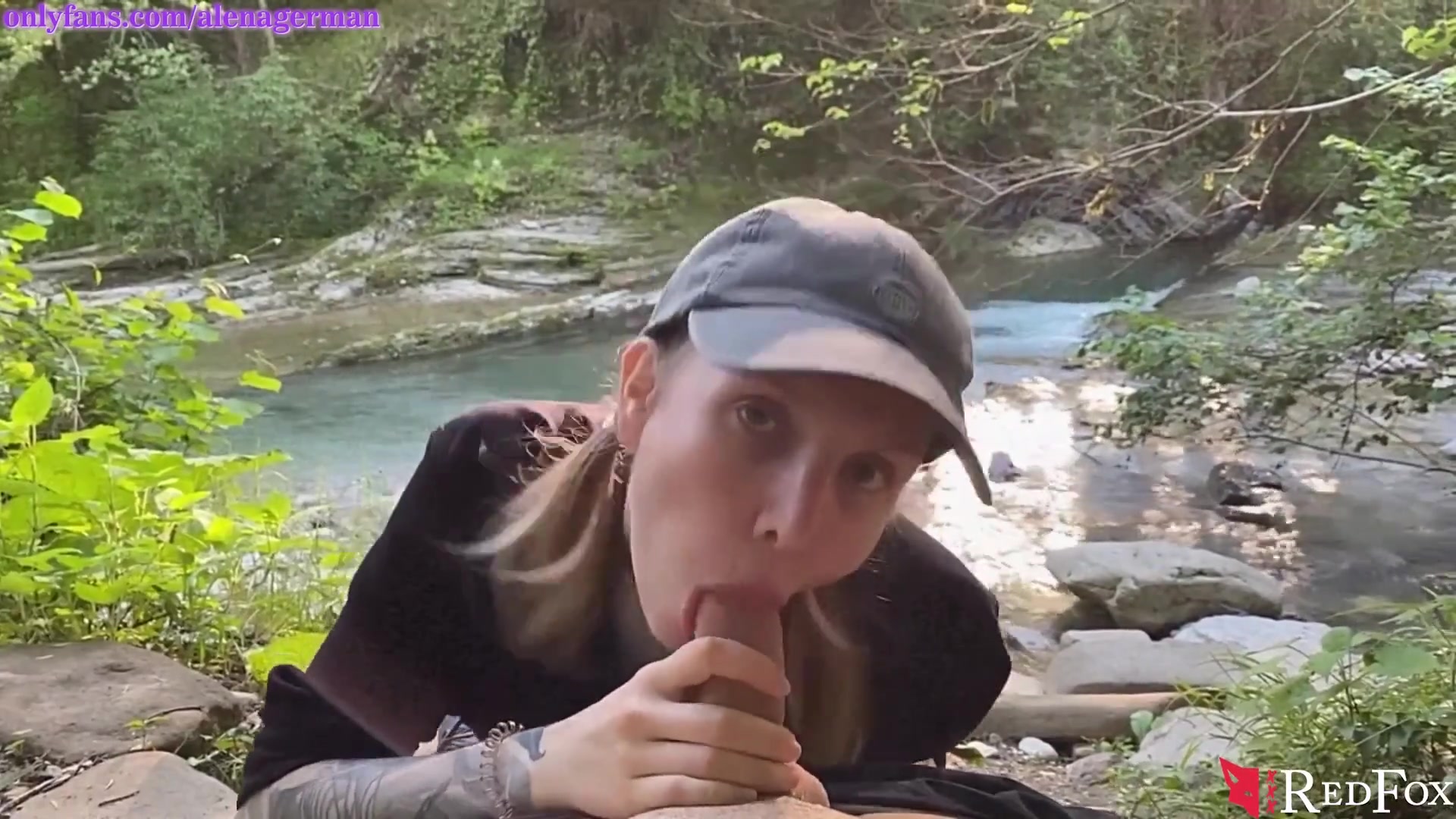 Brilliant Woman Deepthroating Thick Schlong until Oral Job Internal Cumshot in the Woods