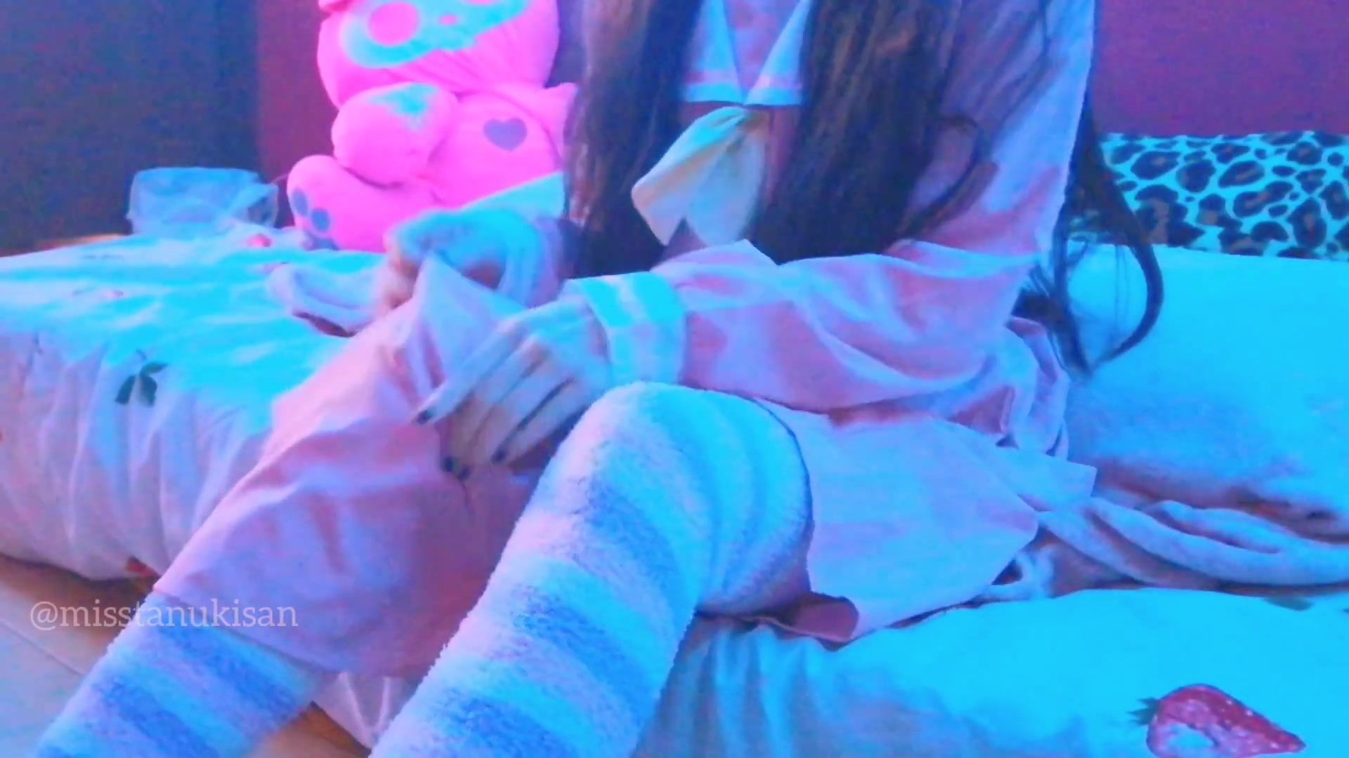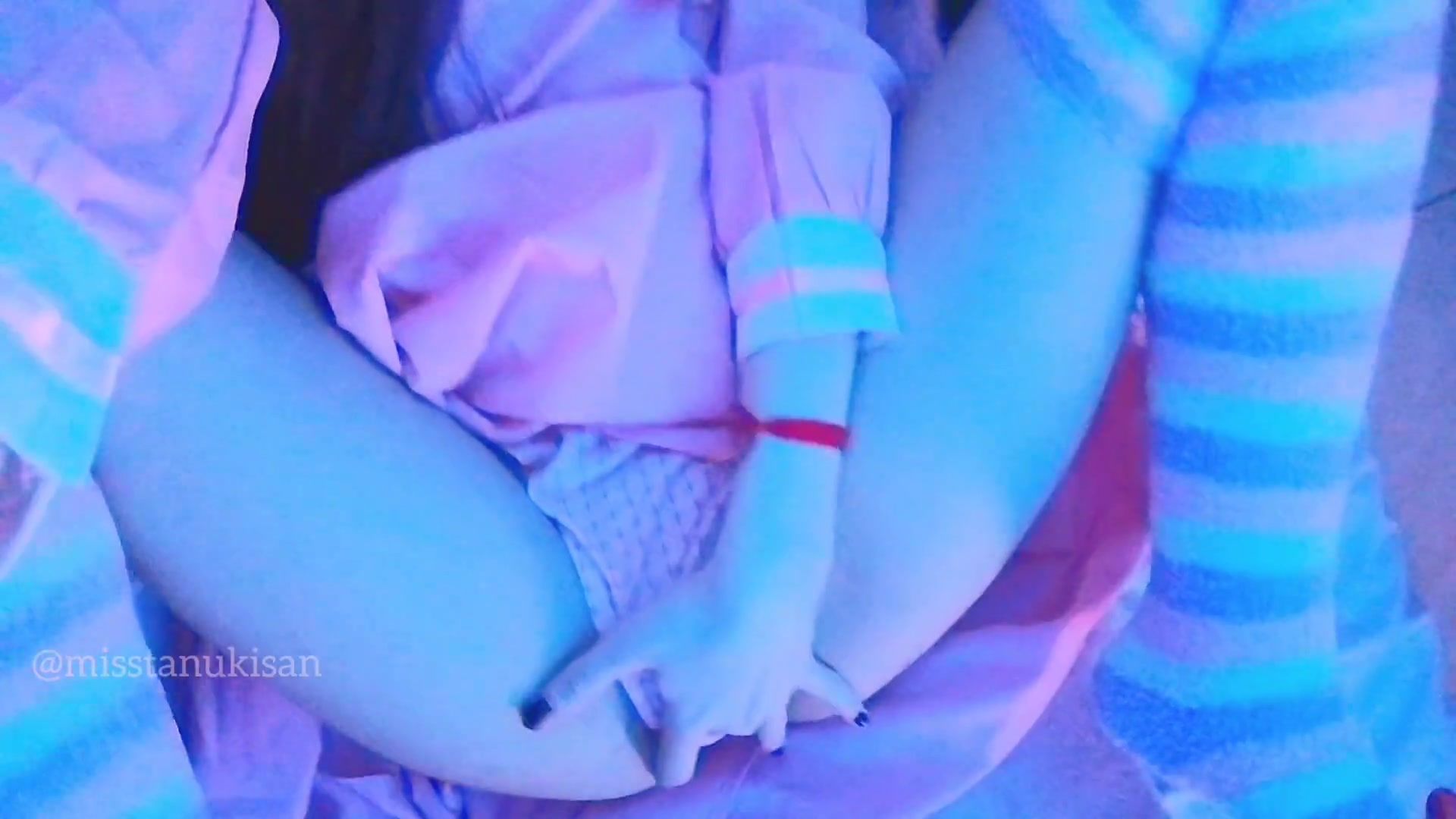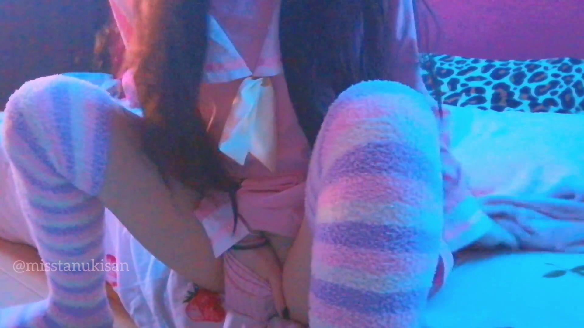Rosy hair sapphic nymph fucking cushion in college uniform fishnet uncensored coochie pawing cushion anal invasion