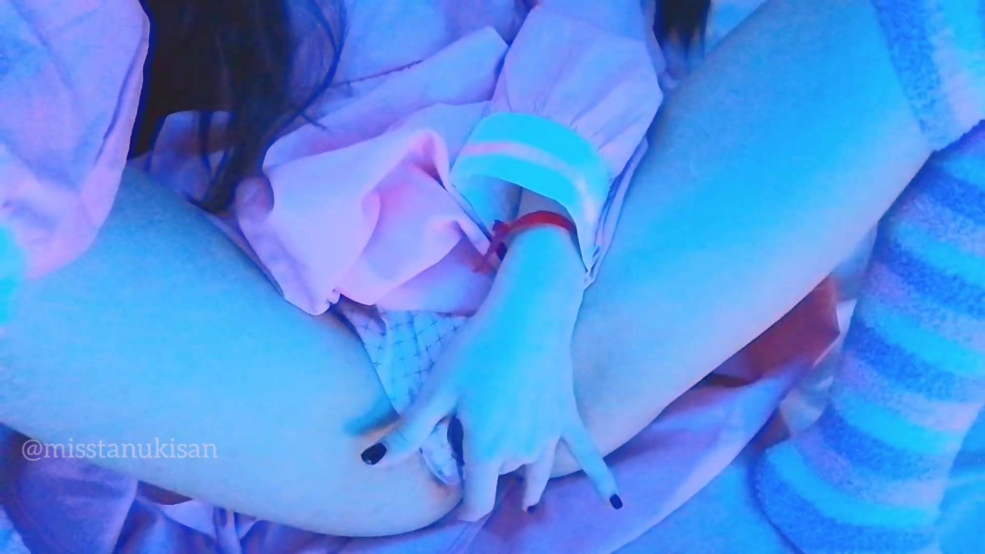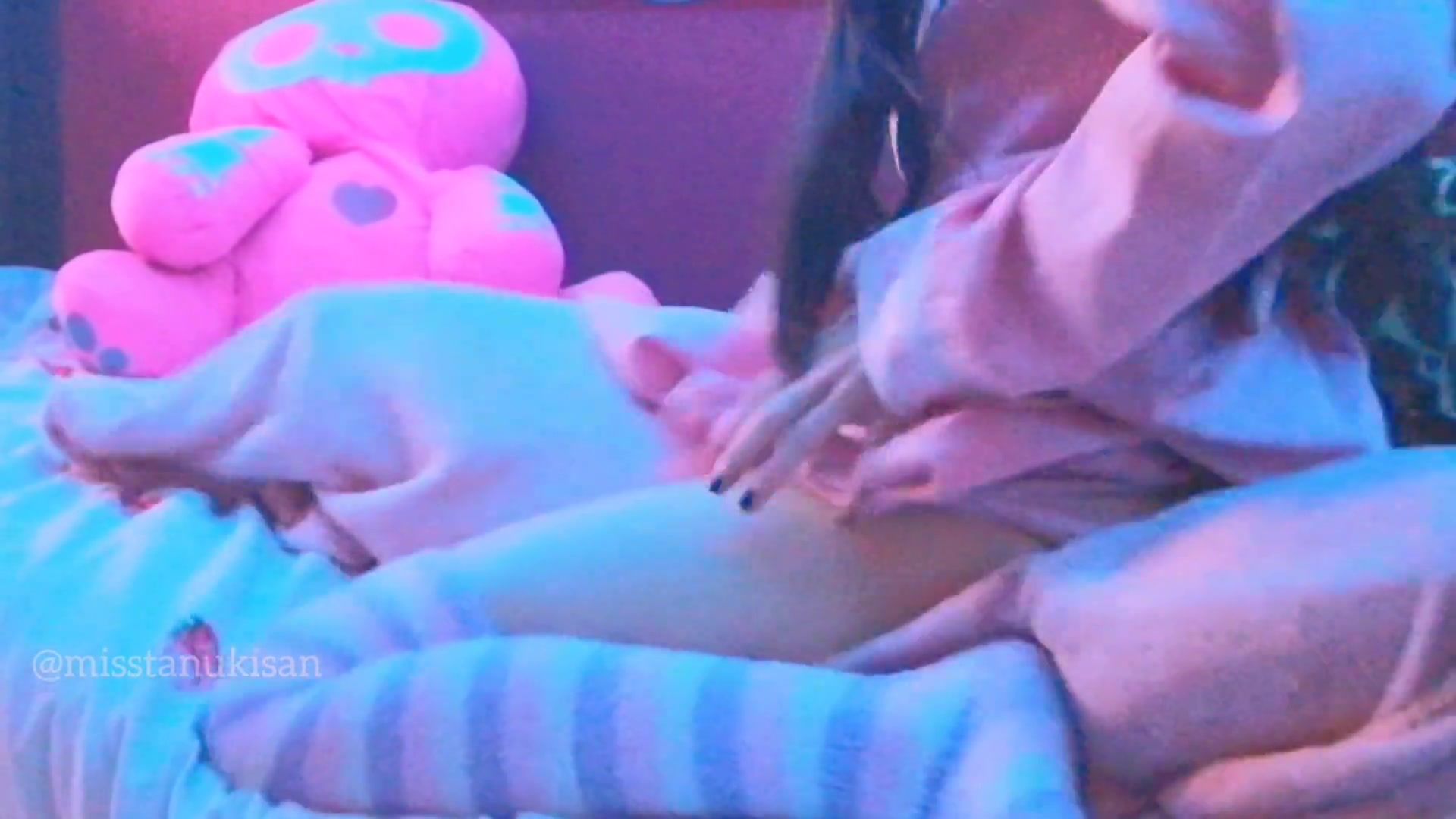 Kawaii Japanese chick caressing her labia and smashing cushion when parents are home noisy screaming