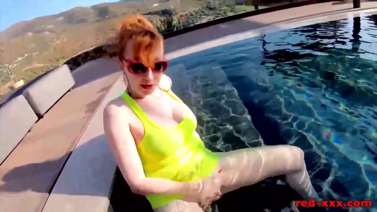 Buxomy red-haired wifey jacks while outside in the pool Pornography Flicks - Tube8