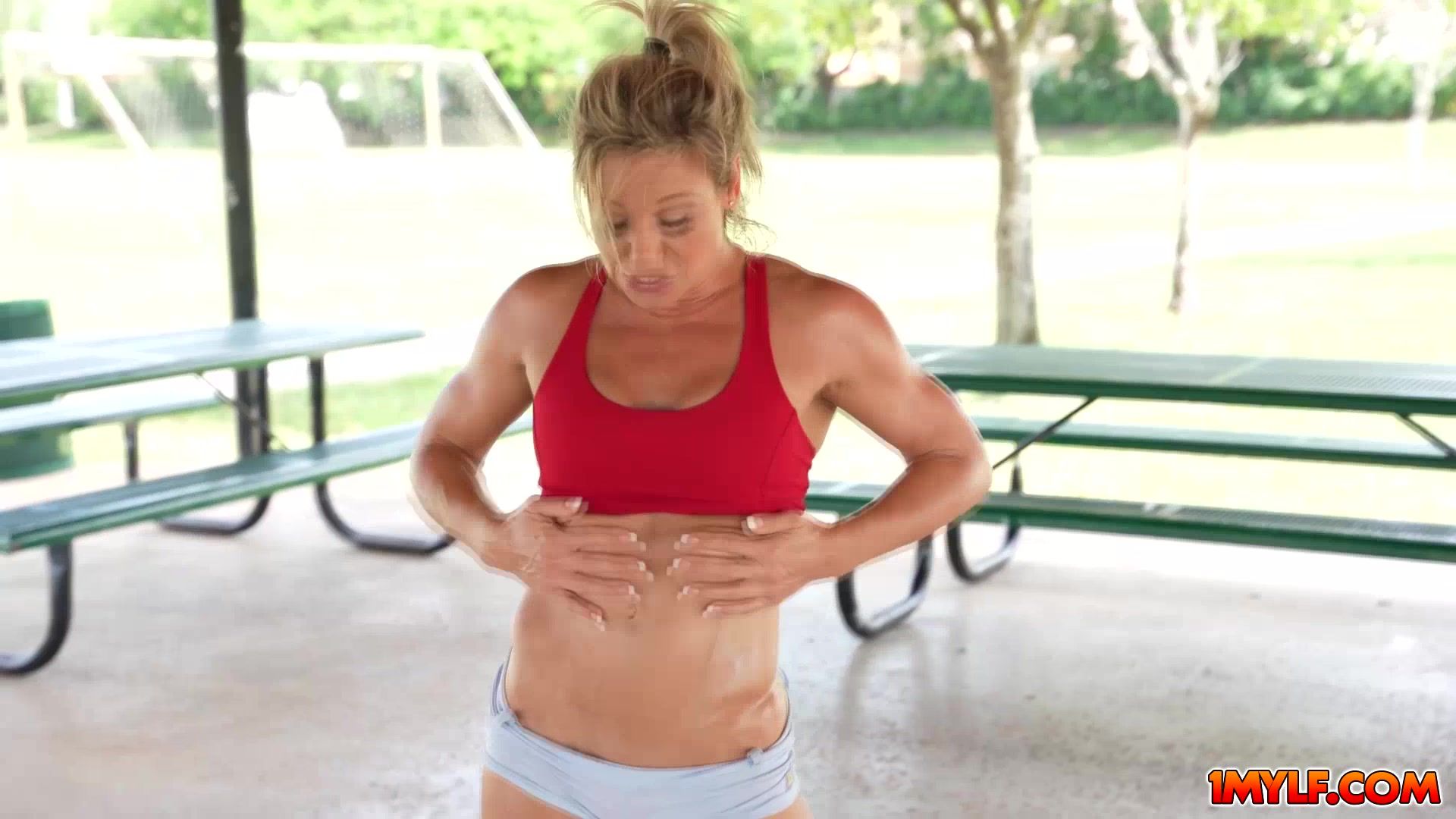 Busty milf wants share how she workouts