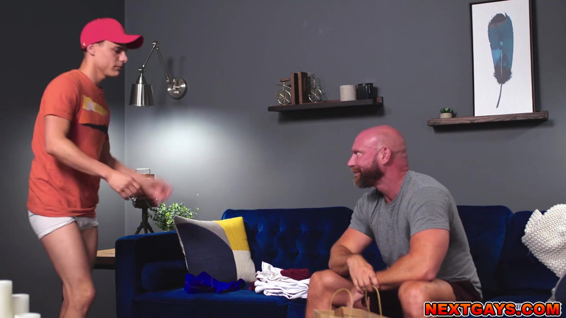 Killian praises Asher for being such a quick learner and gives him a gift Killian then gives Asher a jockstrap encouraging him to put that on first Once Asher is wearing the jockstrap Killian lustfully admires and inspects him