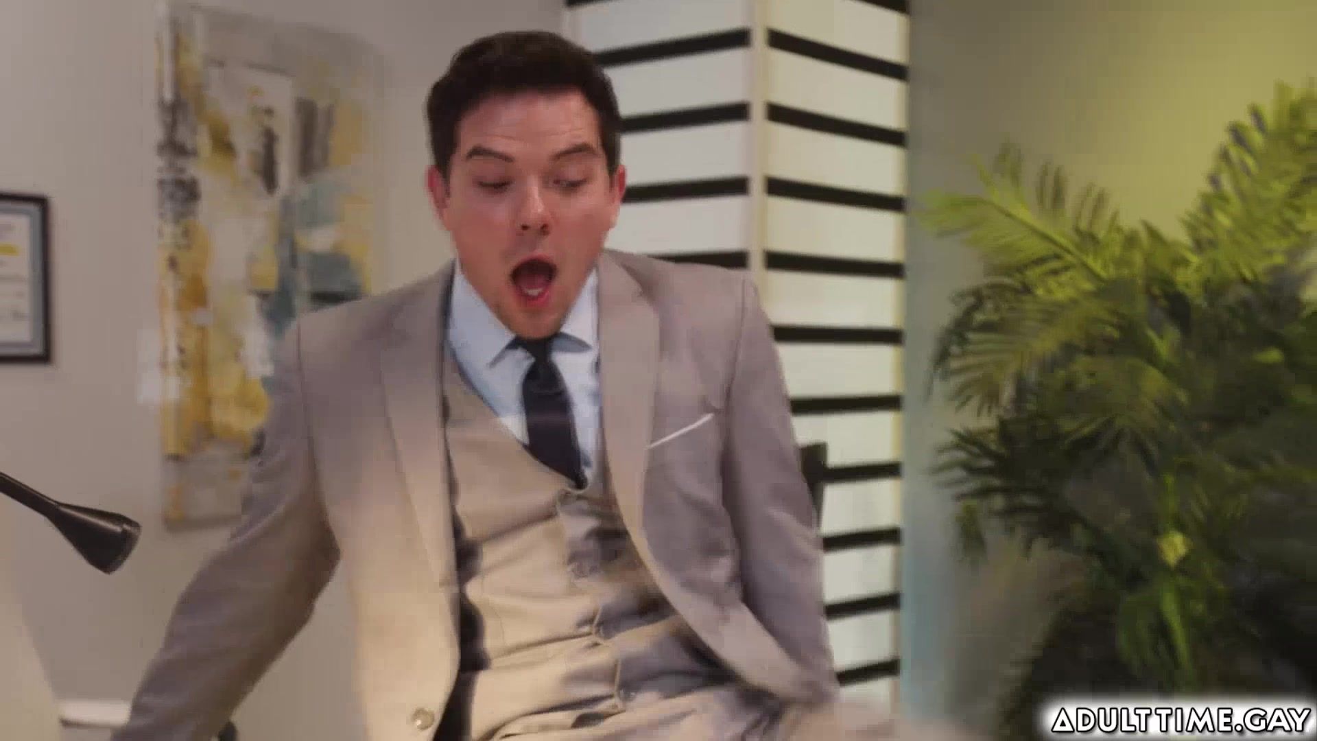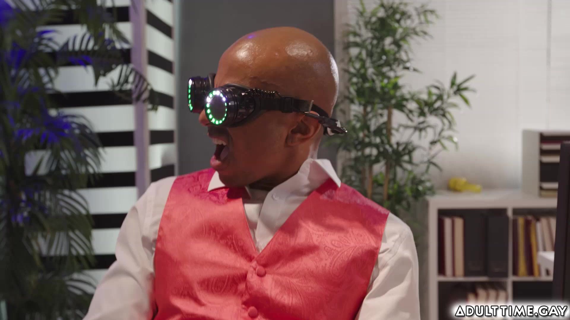 Jkab Ethan Dale keeps checking on his boss Dakota Payne. Jkab puts on the goggles and starts checking Dakota seeing right through his suit! he notices a purple butt plug out of his asshole. Dakota soon discovers what Jkab's up to, and decides to teach him a lesson a threesome, with their big boss.