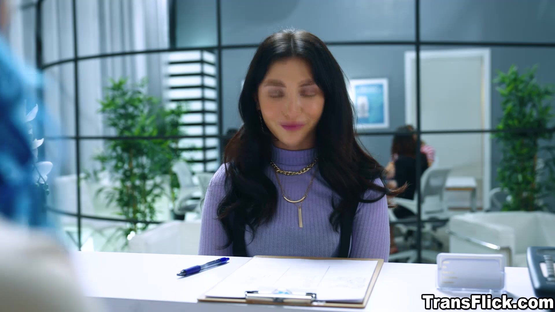 Shemale boss sucks and fucks her intern
