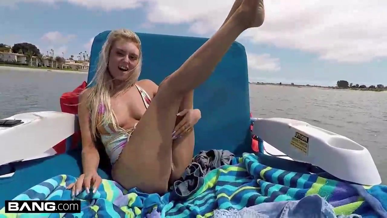 Smallish platinum-blonde honey has a thick smirk on her face while railing a rock rock hard chisel