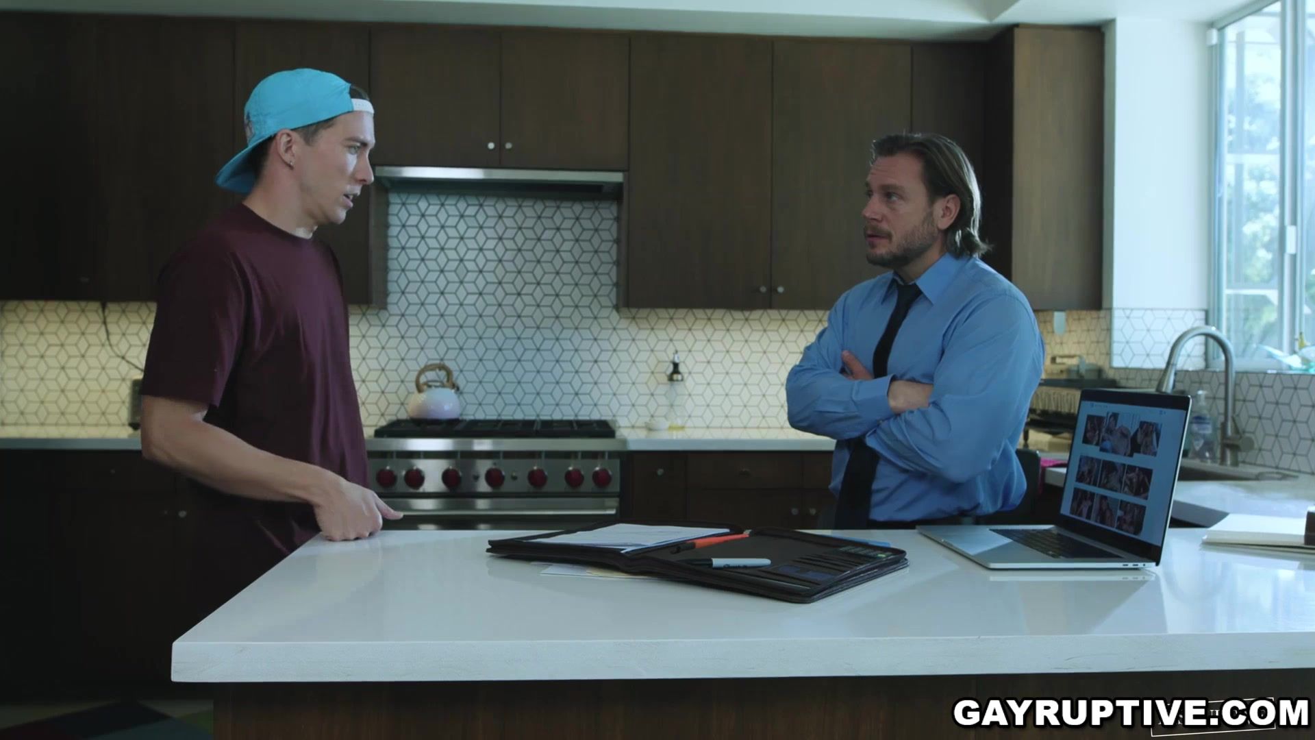 When college morality officer Hans Berlin catches that student Isaac Parker has a fansite account where he sells naked pictures of himself to them asses. Hans gives Isaac a lesson that for sure he will never forget and will enjoy as well. Hans asked Isaac to blow his cock and after both satisfied