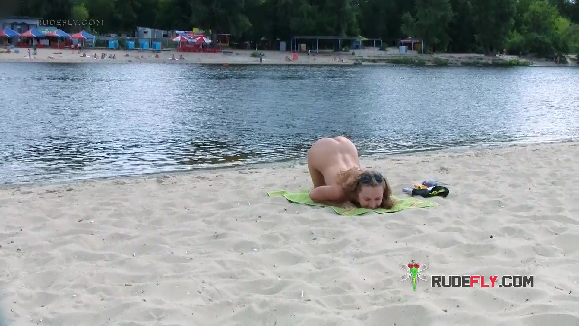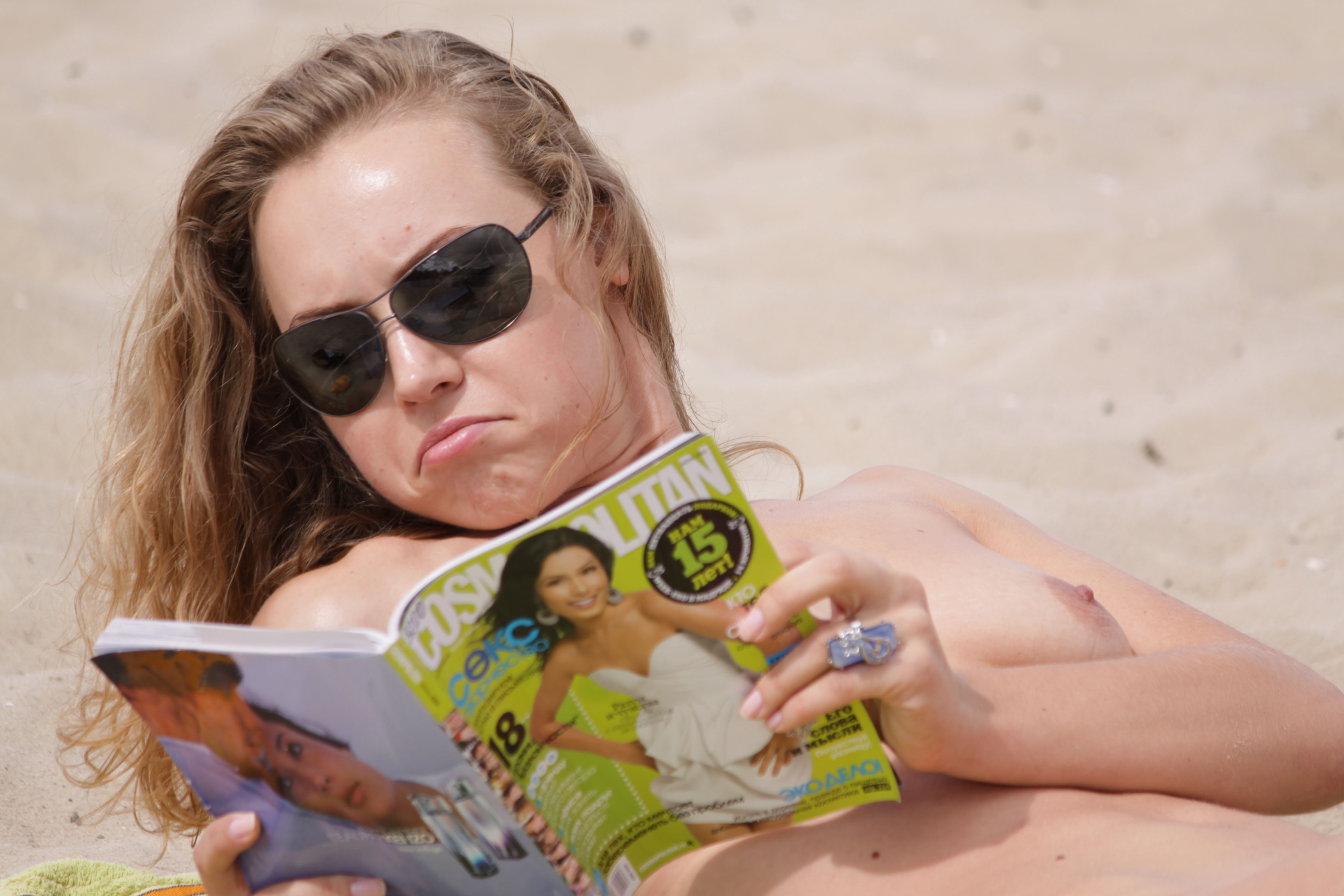 Bombastic young nudist babes sunbathe nude at the beach