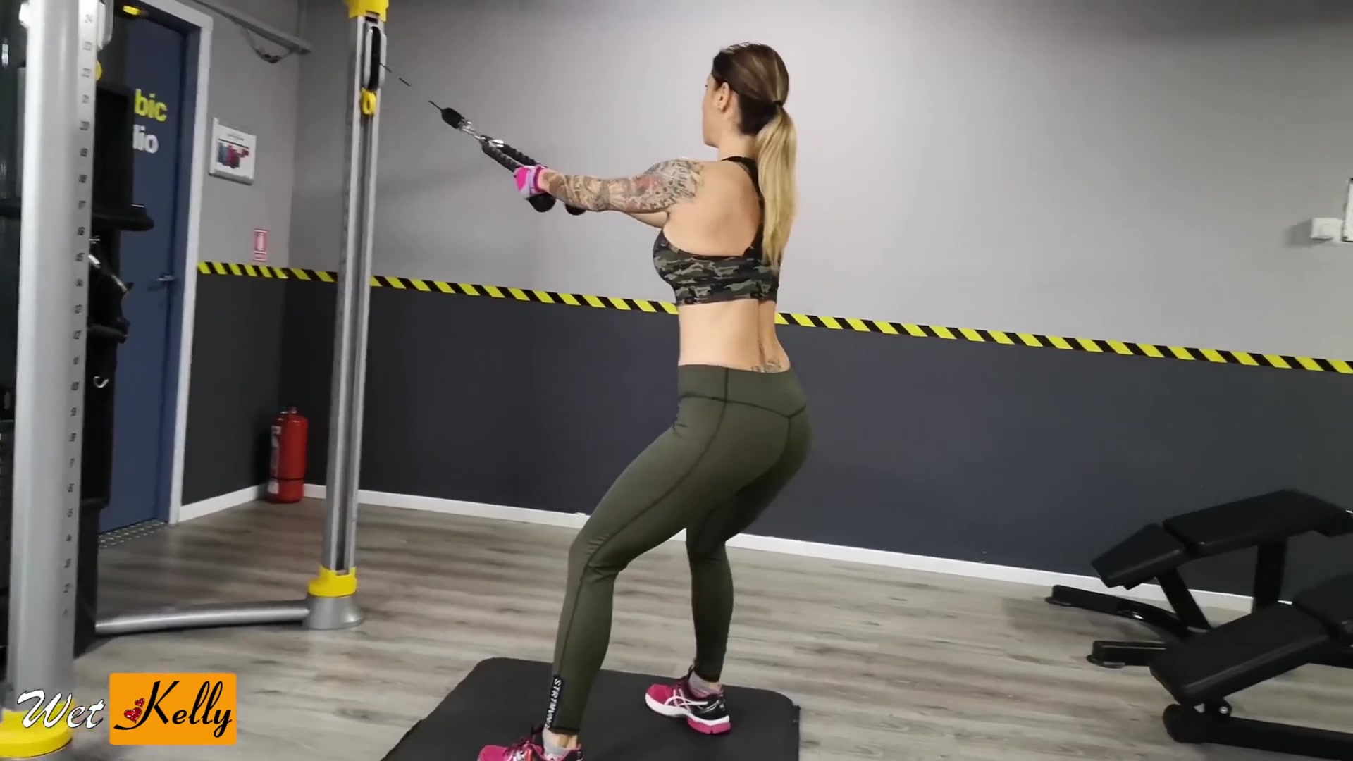 Nude stunner is face-sitting her grappling fucking partner in the gym, while no one is witnessing them