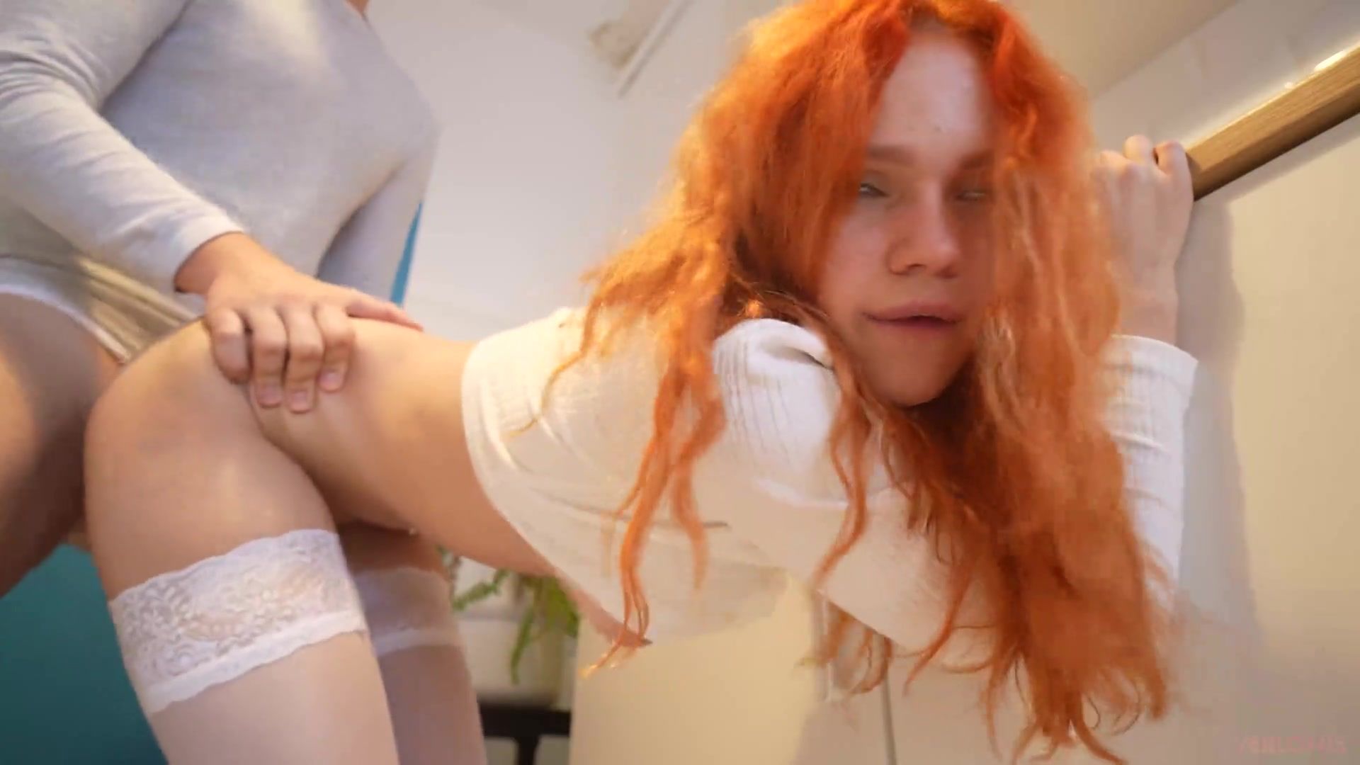 Crimson haired teenager with smallish breasts is getting banged in the kitchen and in the living bedroom