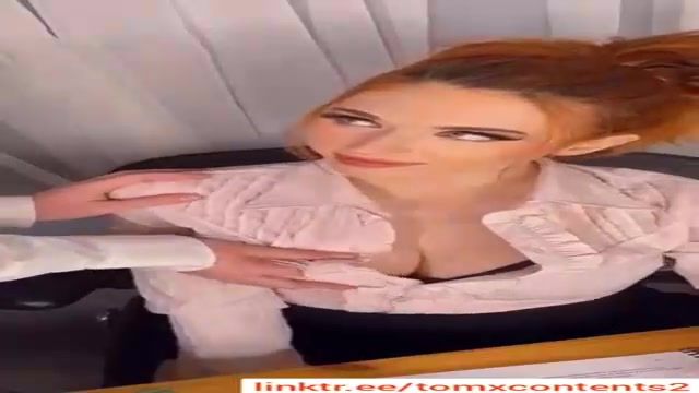 Fabulous stunner with crimson hair, Amour is toying with her hefty bosoms in front of the camera