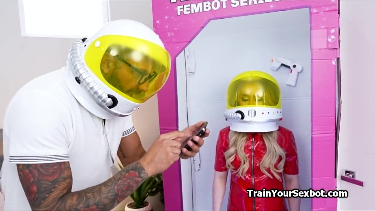 The latest sexbot model has arrived. Her name is Haley and she is a sexy one wearing a hot space suit. But her pussy craves for serious dicking!
