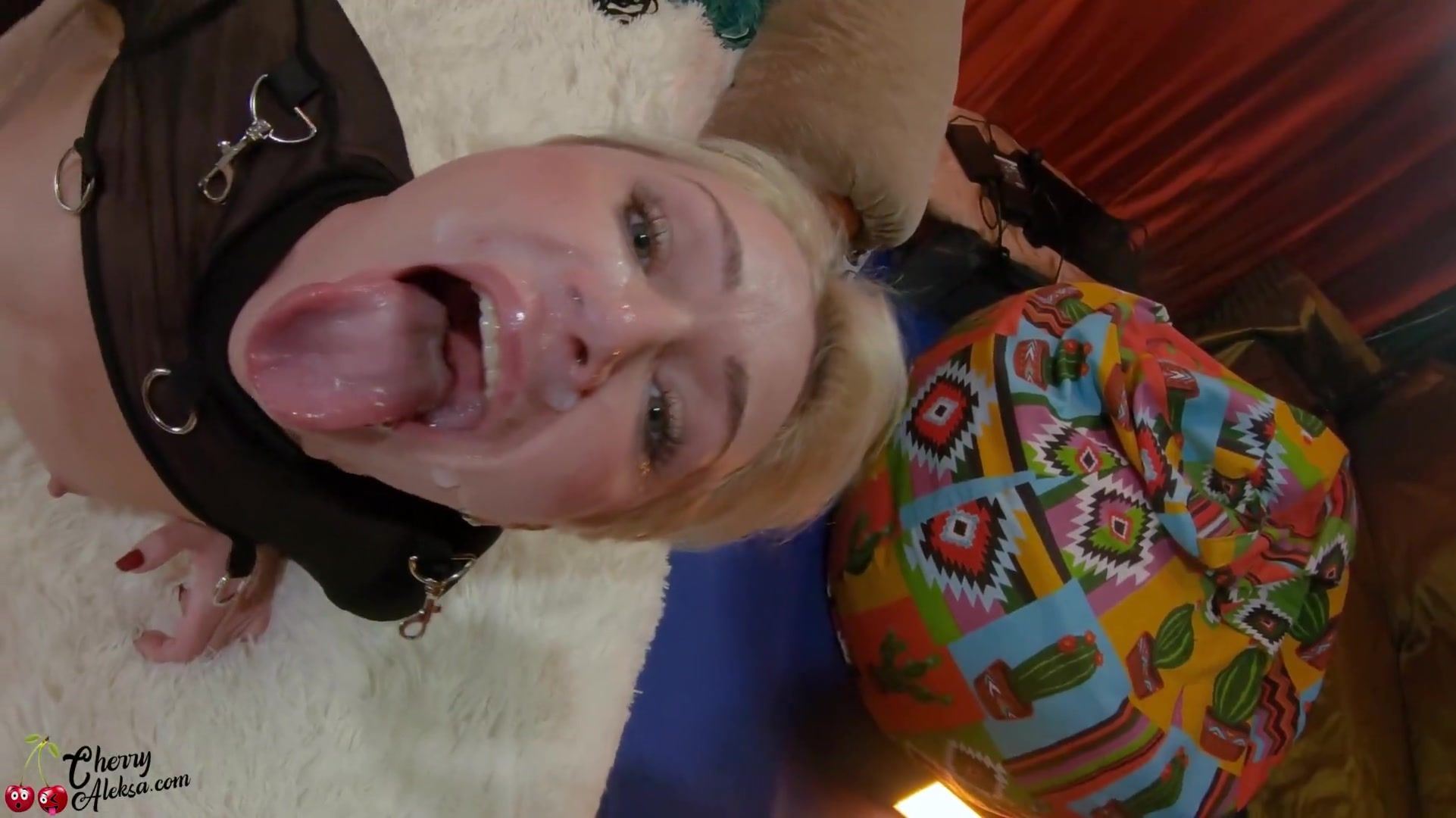 Colored Hair Honey Sucky-Sucky Fake Penis and Giant Facial Cumshot Close-Up
