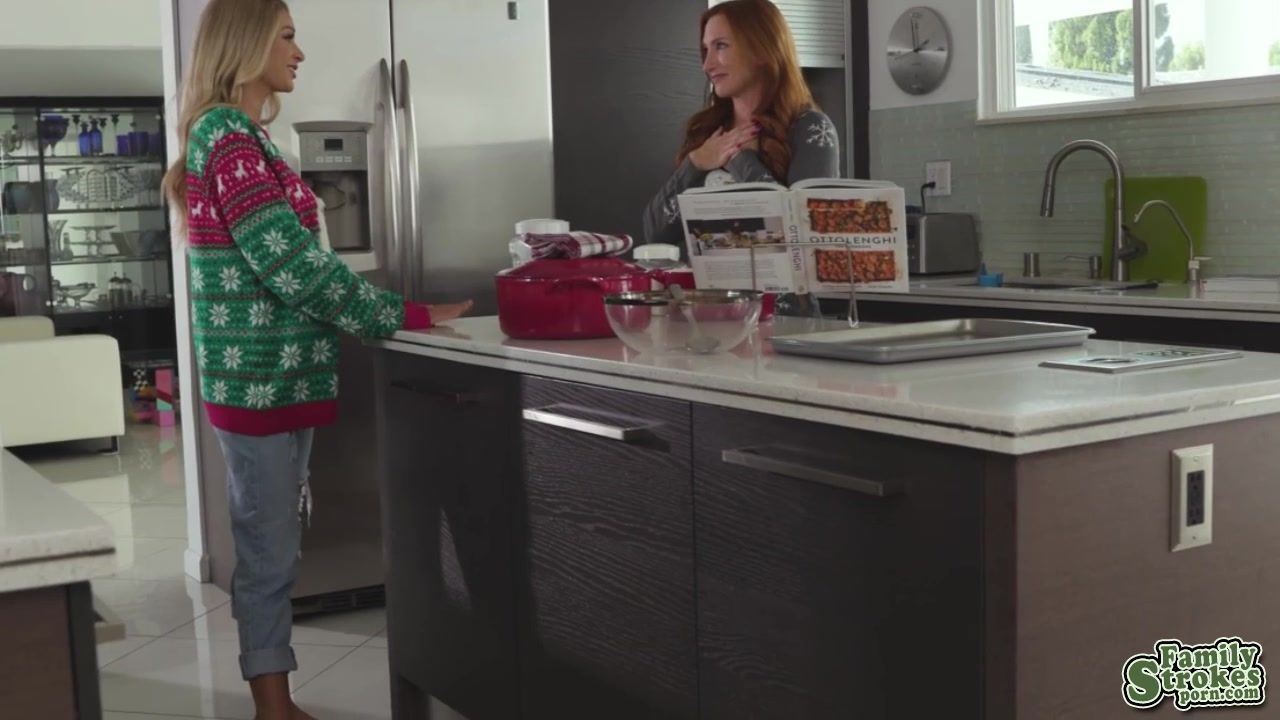Emma feels her mom zones out when preparing for the holiday. To prove her point, she blows Brad in the middle of the kitchen, and his wife doesn’t notice! Brad is ready for round two. Emma eats his cock as she asks Brad if he wants to feel her tight pussy. Brad fucks Emma intensely