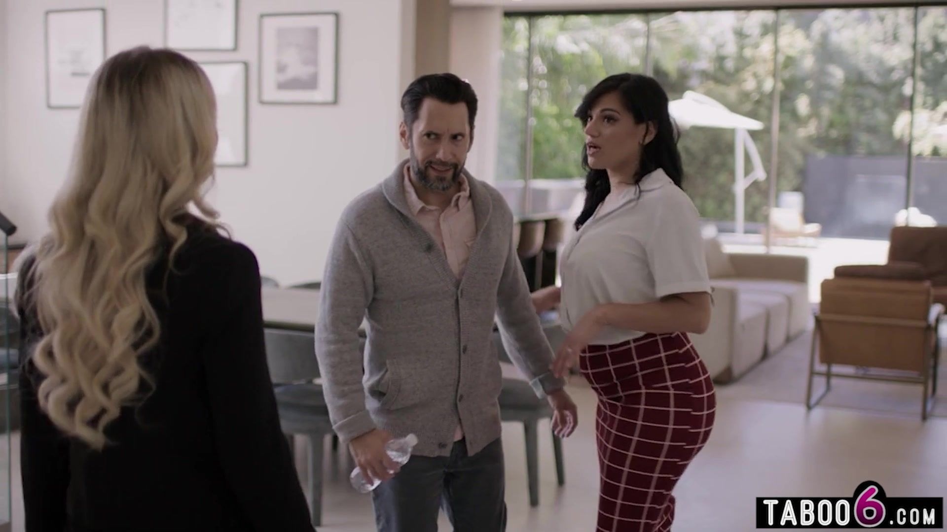 MILF real estate agent Lilly Bell makes husband cheat on his latina wife Mona Azar during the viewing of the mansion! Once she locked wifey up in the elevator she finally got that big dick of him deep inside her realtor pussy!