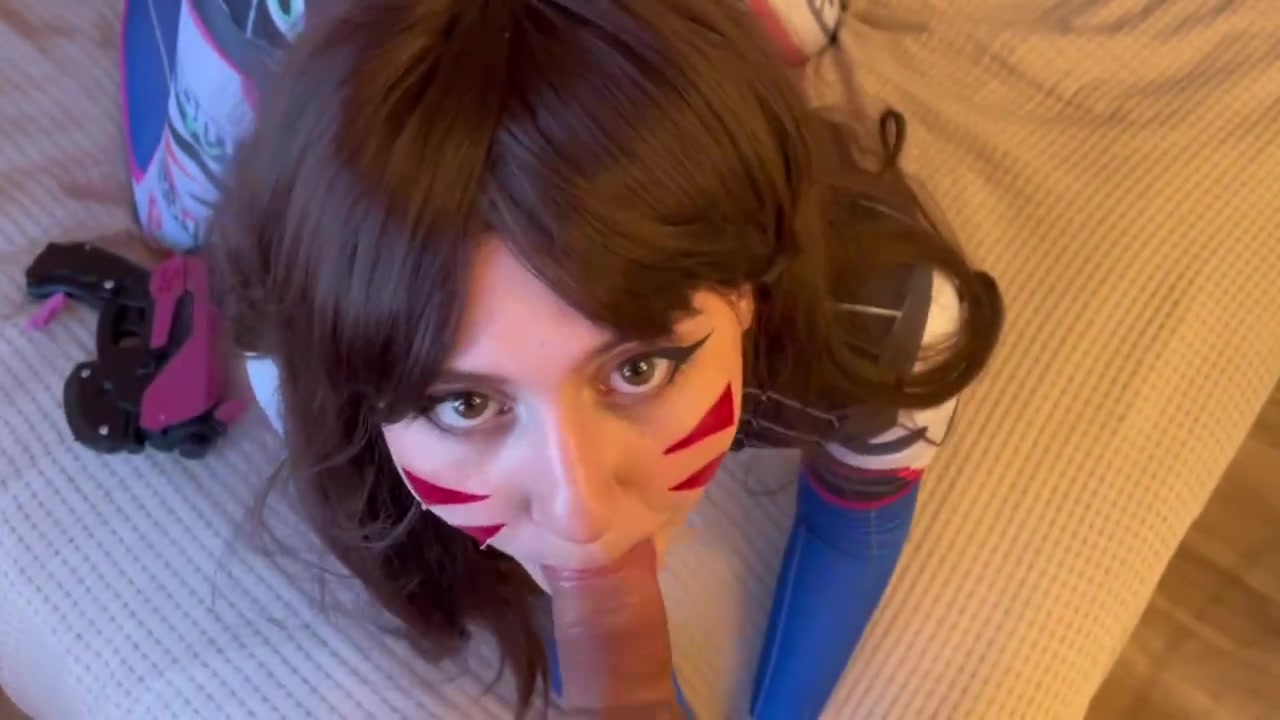 Blinded stunner is gargling beefstick as deep as she can and hoping a phat facial cumshot popshot