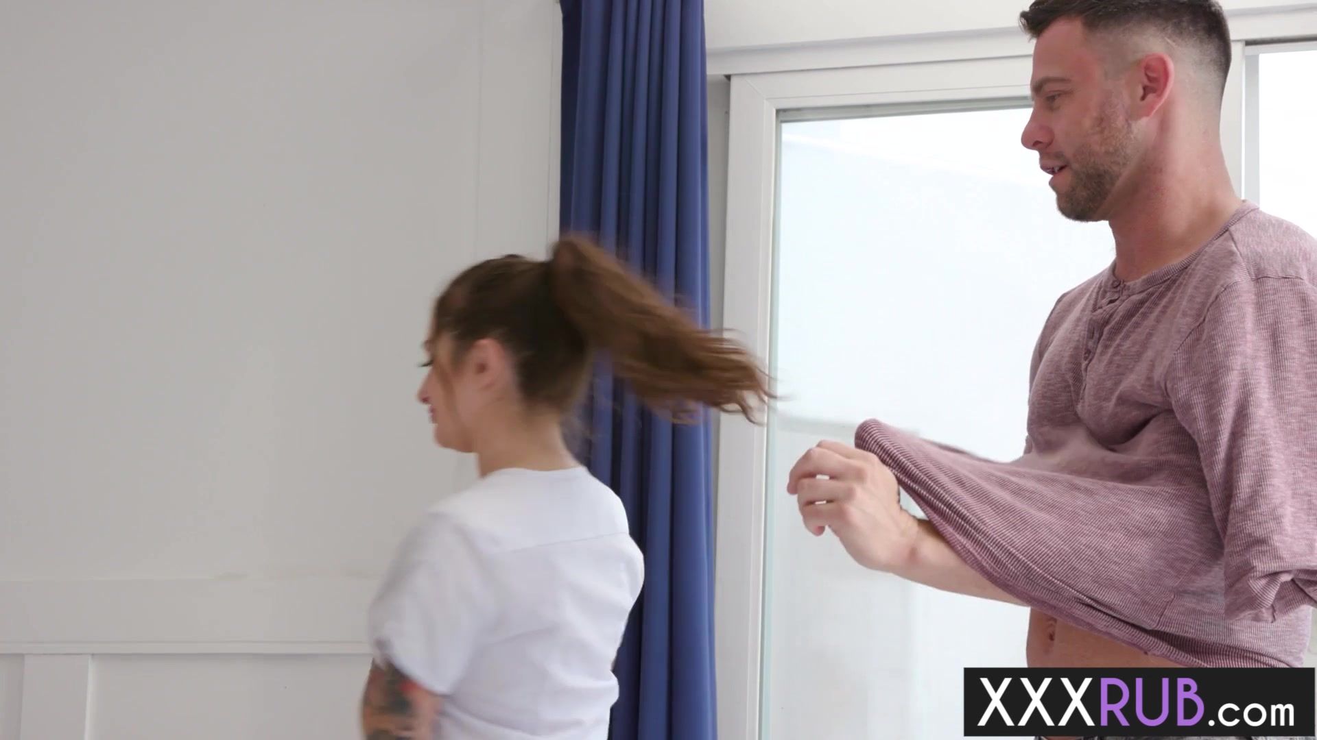 Amazing massage and beautiful blowjob by tattooed big tits teen masseuse Bella Blu and she pleased big cock client Big ass teen massaged guys body and dick After perfect blowjob busty teen enjoyed rough pussy fucking