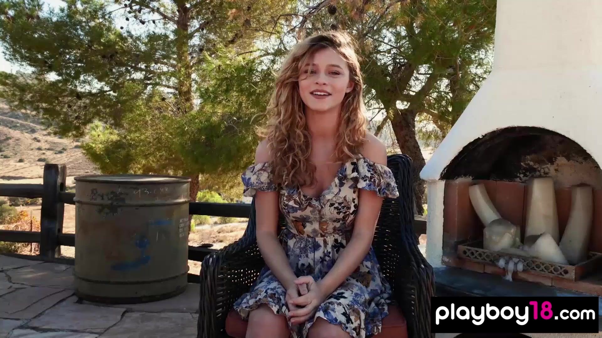 Big boobed nude blondie swinging outdoor
