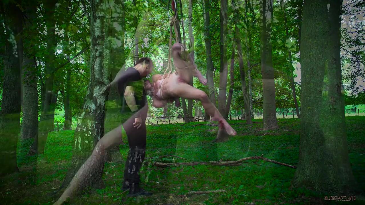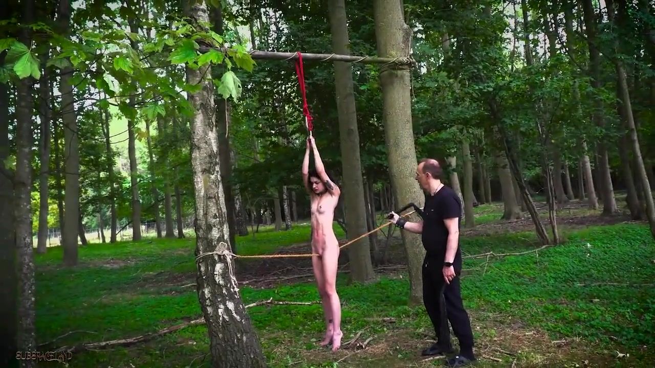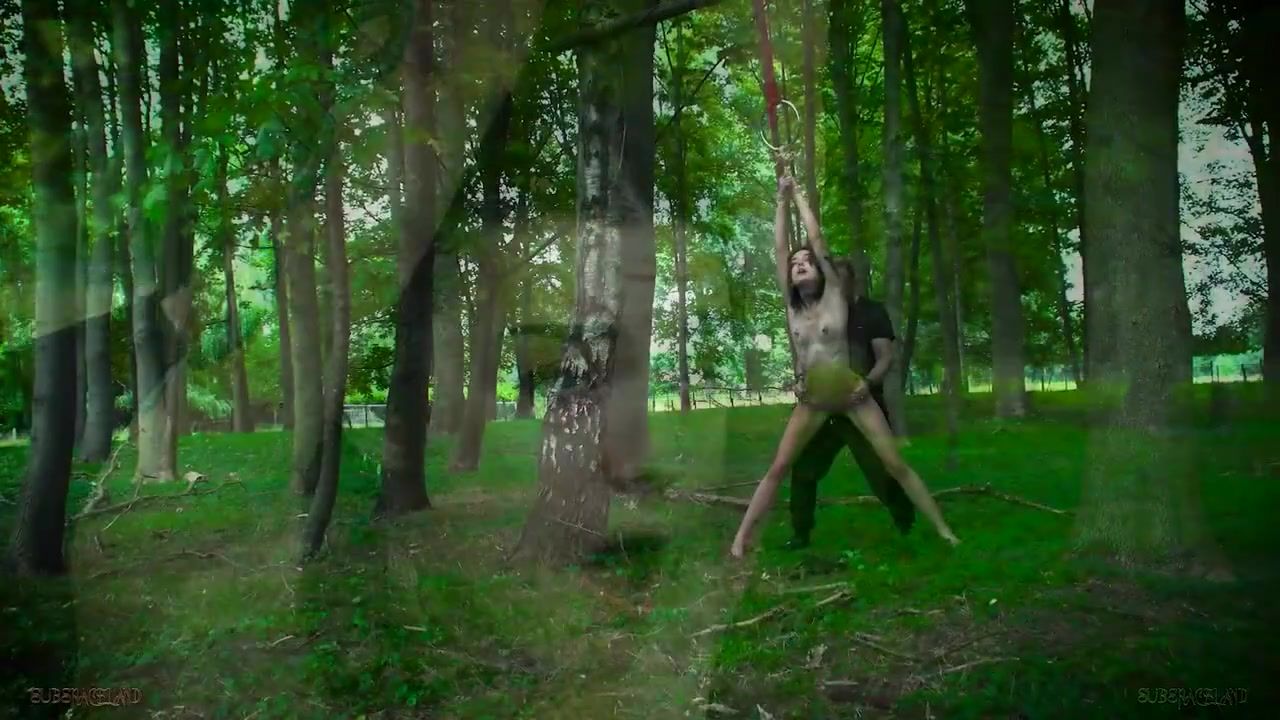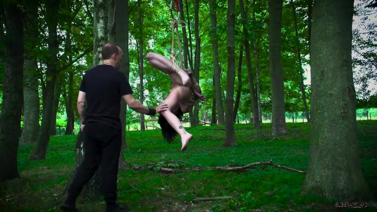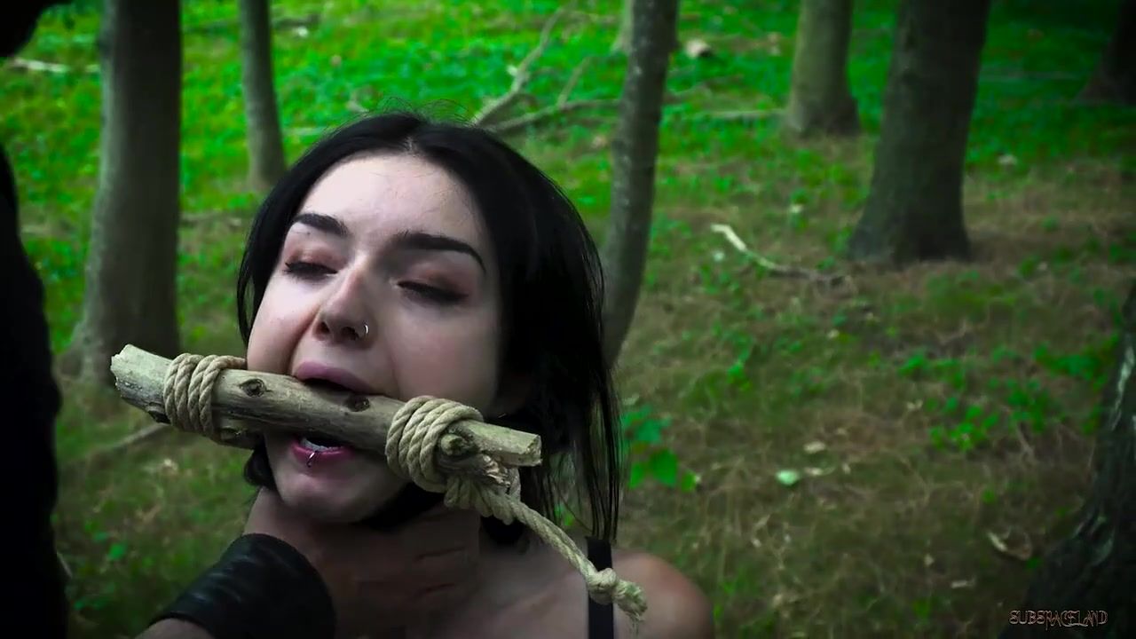 Petite jugged dark-haired with pierced nips got strapped up and smashed in the woods, the other day