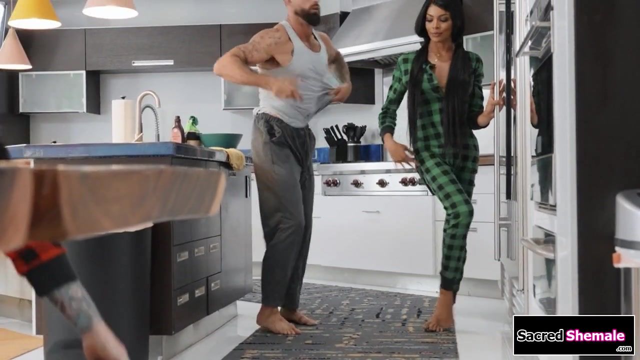 Latina trans Lola Morena seduces her broinlaw and the cheating guy is almost caught anal fucking her in the kitchen.The big tits tgirl deepthroats his big cock under the table and then the brunette tranny is rimmed.After the busty ts gets barebacked