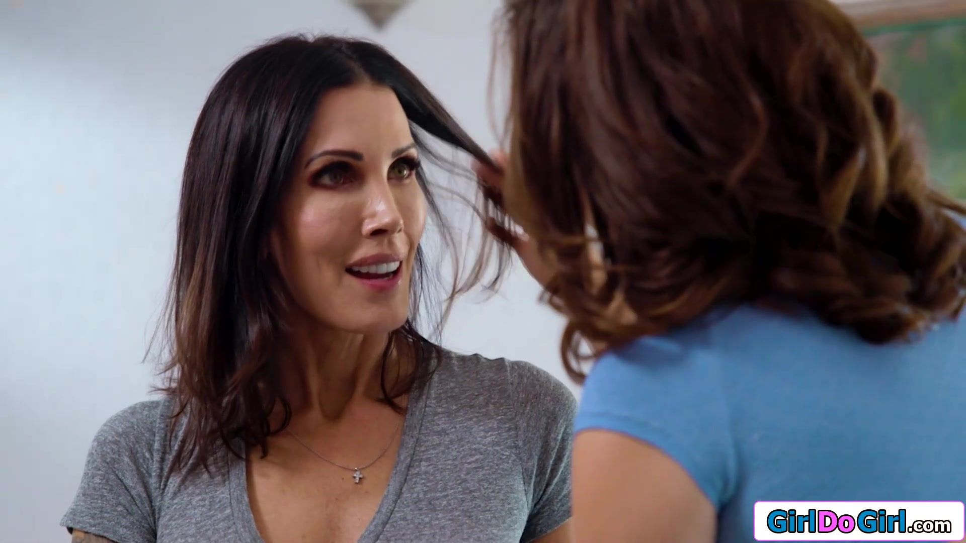 Stepdaughter licking busty MILFs pussy