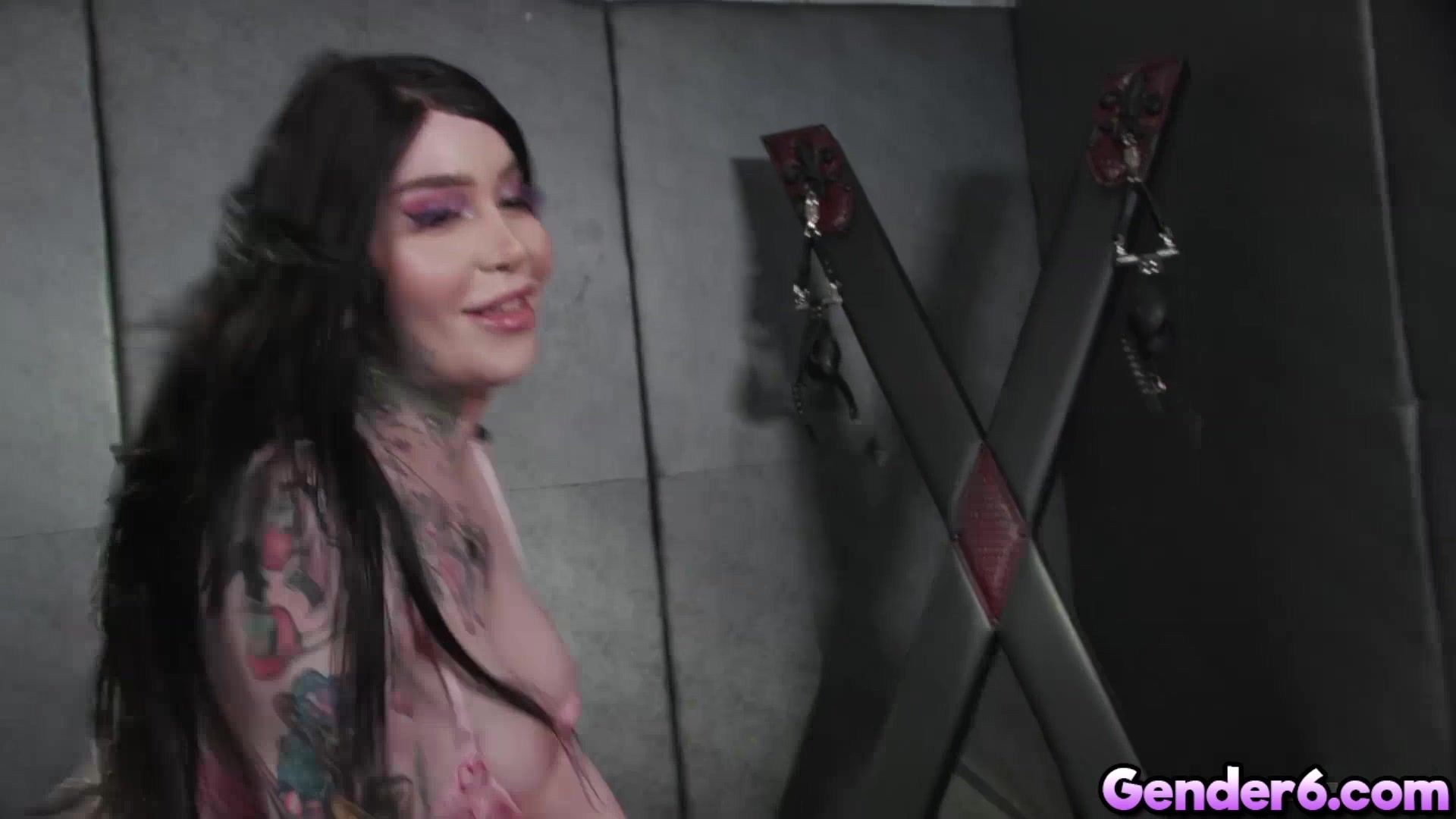 Angelina Please and Gracie Jane couldn't wait to start their scene. Gracie spanks Angelina while buttfucking her doggie-style. Angelina deepthroat trans Gracie's boner ass-to-mouth. Gracie shakes and spreads her ass as she blow on Angelina's she-rod, and she rims the masturbating blonde.