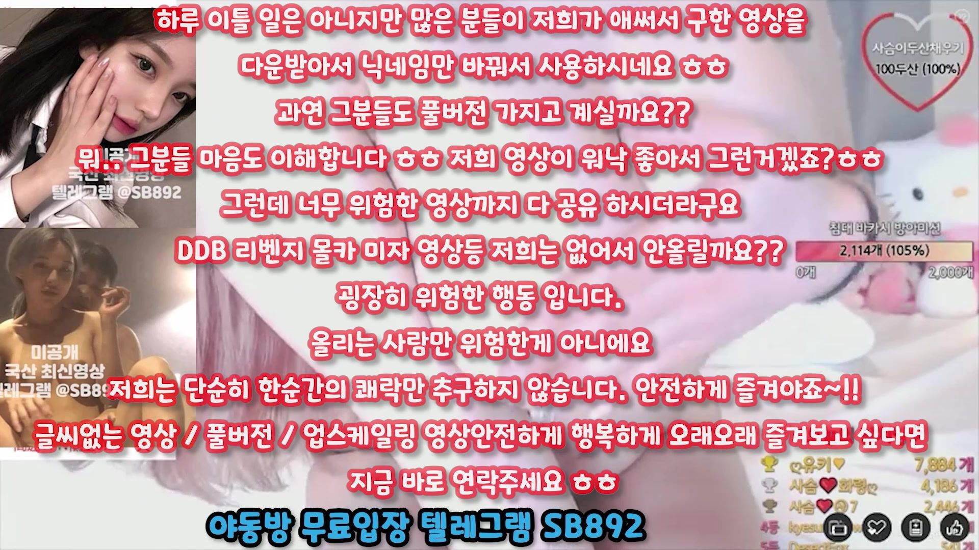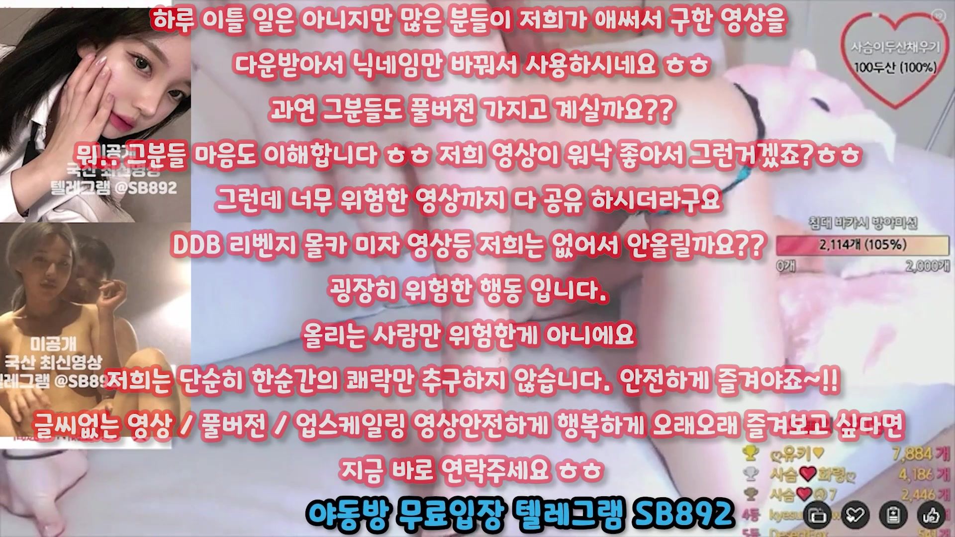텔레그램, SB892, 베스트, 라이키유출, 슬랜더, 밍키넷, 아가씨, 여관, 간호사, 붓카케, 서양야동, 건대걸레, 한국, 야동