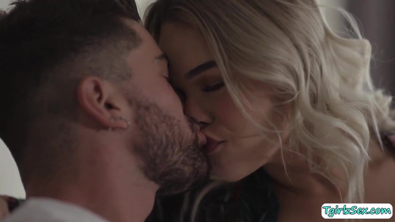 Smal tits yet beautiful transsexual babe Emma Rose teases hunk straight guy Chris Damned kissing passionately while stroking his big hard cock.The blonde shemale bends down to deepthroat blowjob before he anal barebacks her sexy asshole missionary and more.