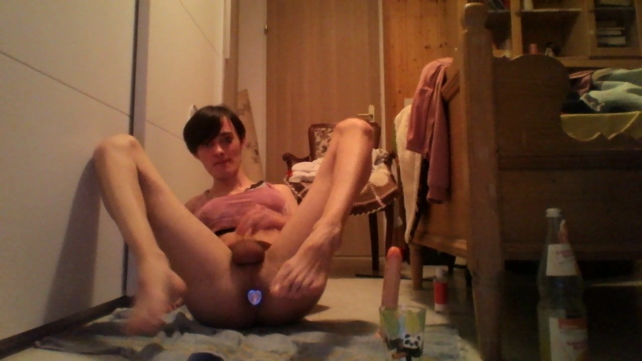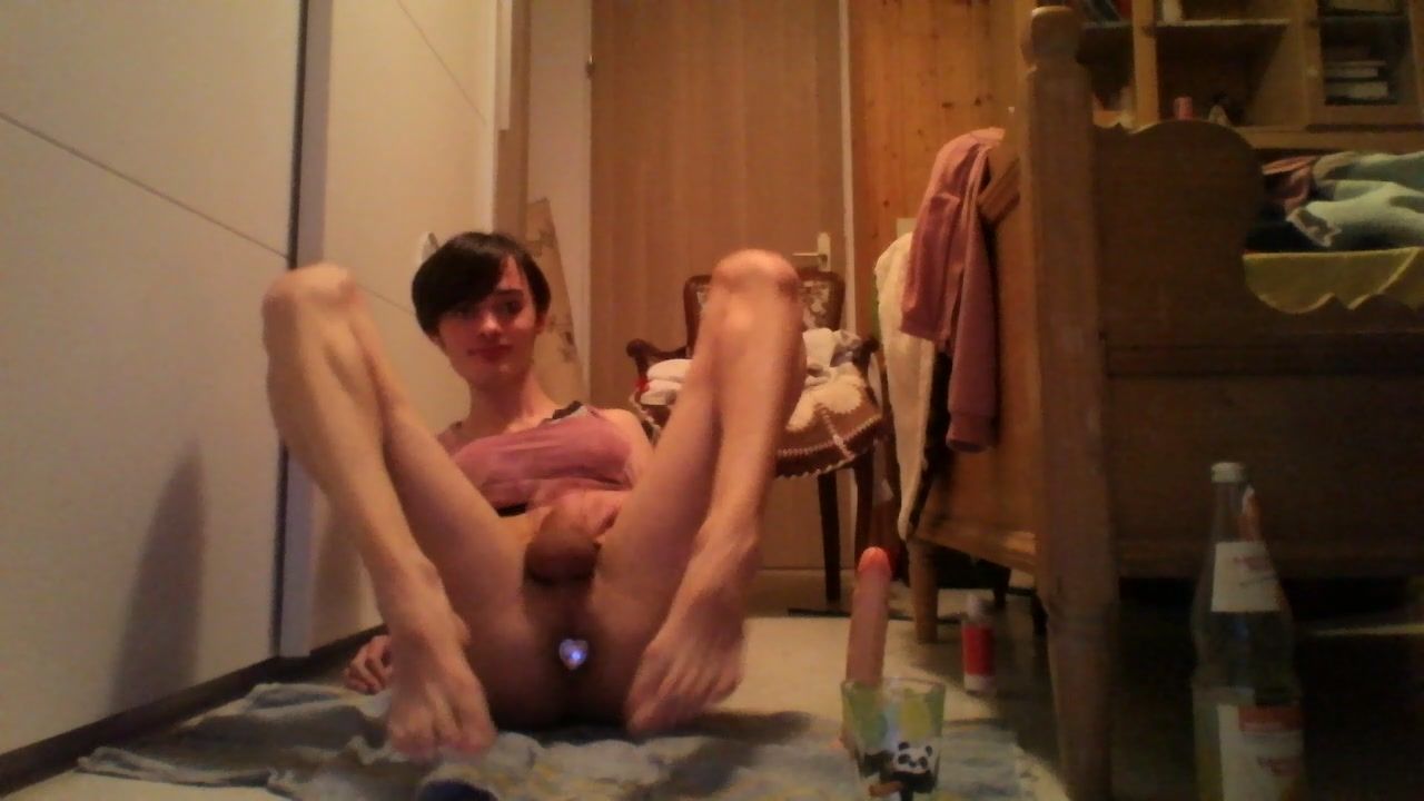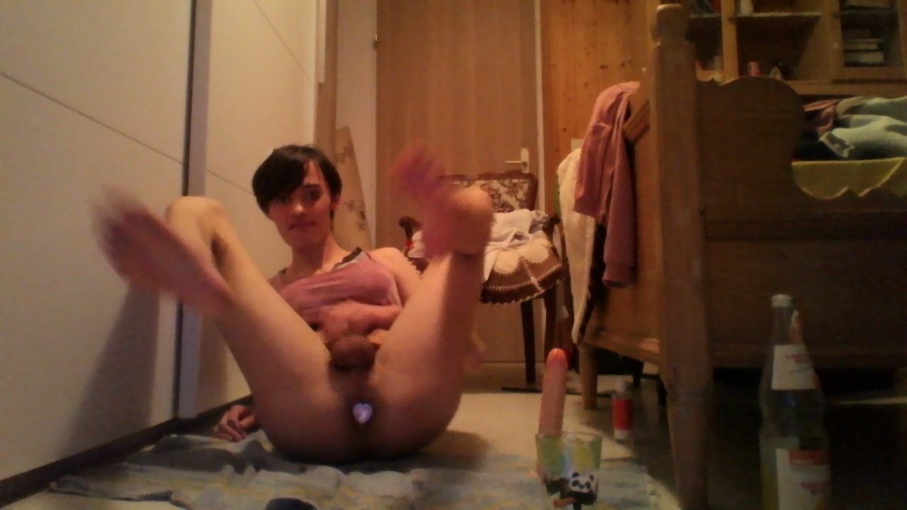 Petite girl Pearl craves for anal stimulation so she uses a butt plug while pussy playing solo