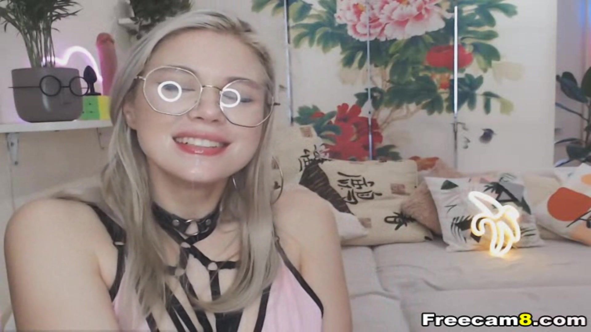 Blonde With Glasses Let Her Boyfriend Cum In Her Mouth