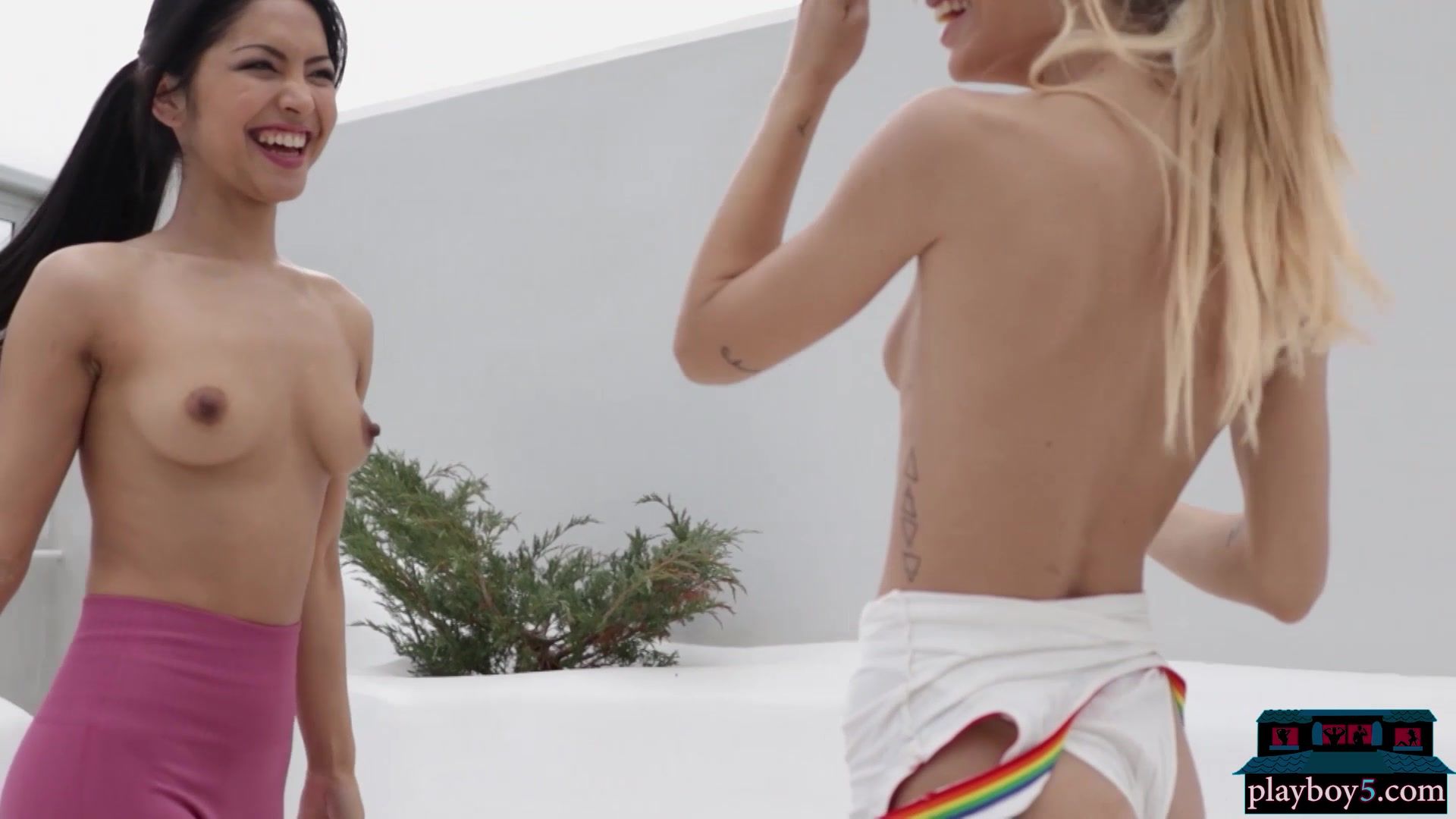 Petite lesbian Asian and Latina babes Chloe Rose and Lorena Hidalgo get together for a workout and a dip in the pool! Playboy captured their beauty perfectly again and these two tiny hotties were a really good match together!