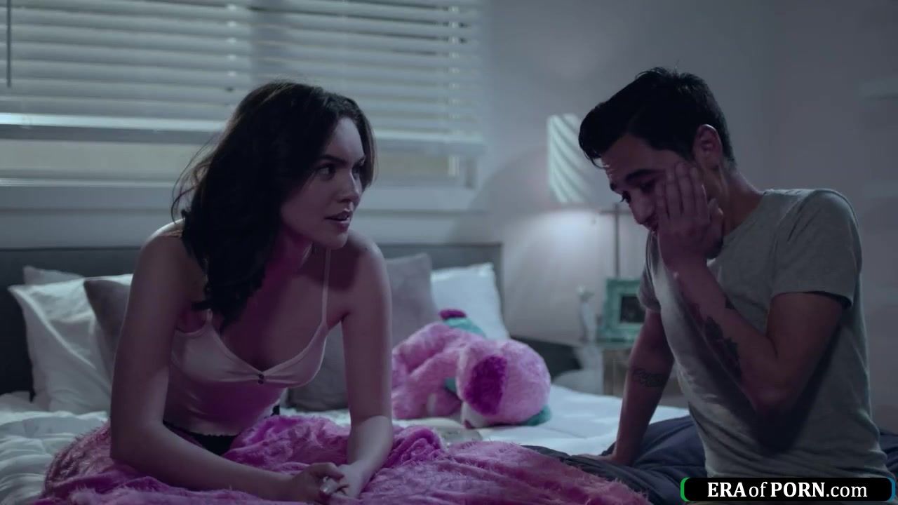 Latino guy sneaks out of his gfs room and the gfs horny stepsister asks him to fuck her.He sucks her small tits and gives her oral sex.The brunette babe deepthroats his big cock and then the petite girl gets fucked as she masturbates her hairy pussy