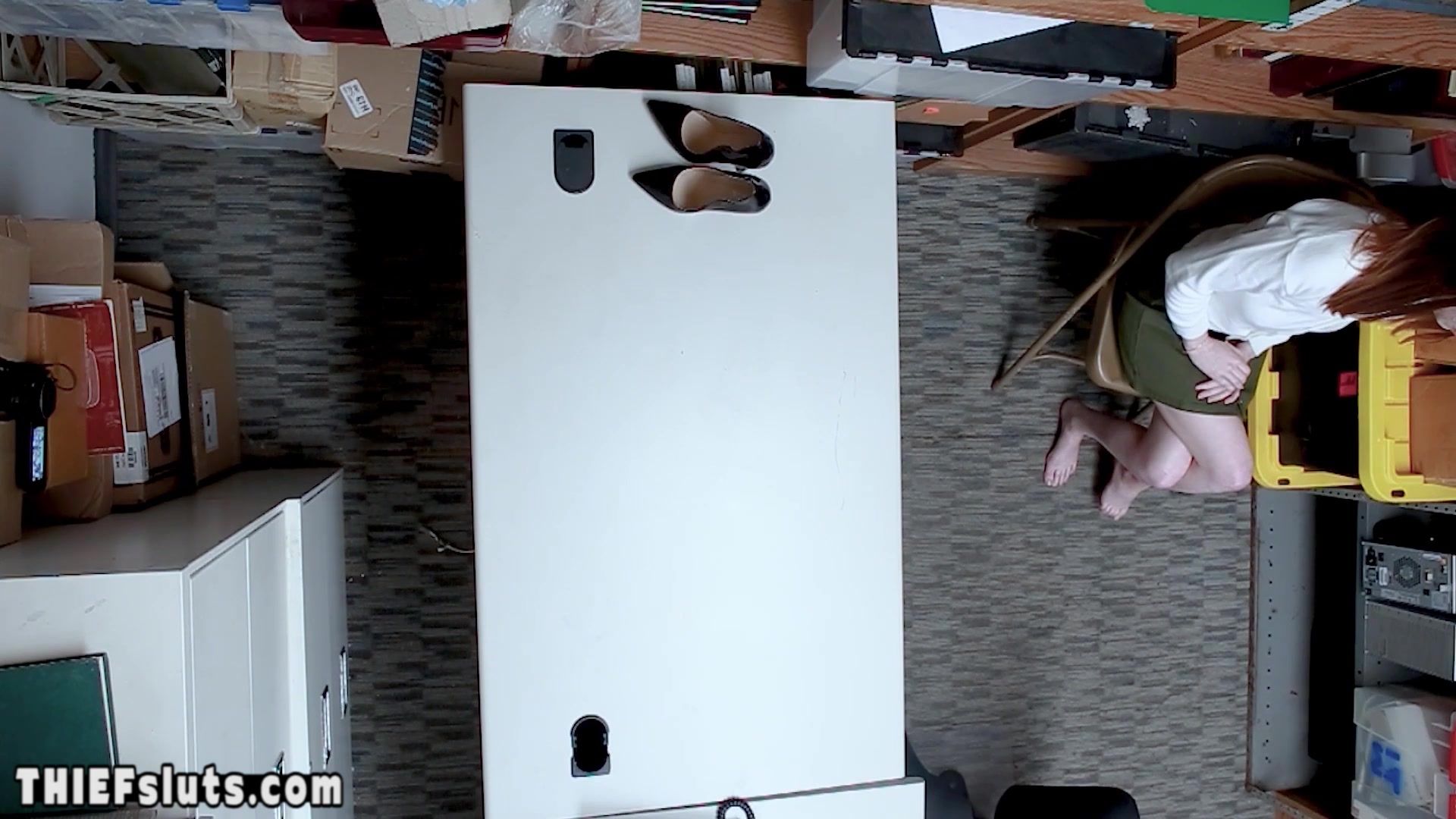 Scared red teen thief Pepper Hart fucked by a big dick