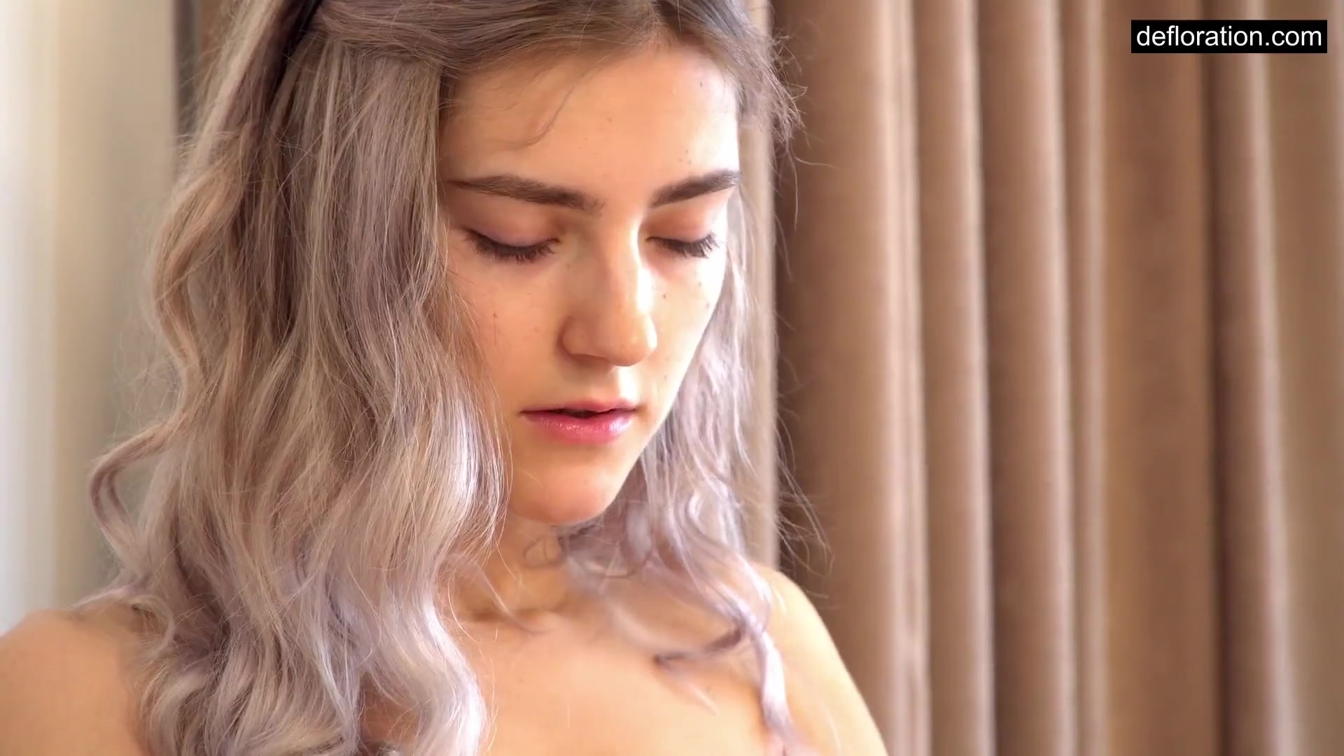 Russian platinum-blonde, Tieny is jerking while alone at home and attempting not to yell too noisy