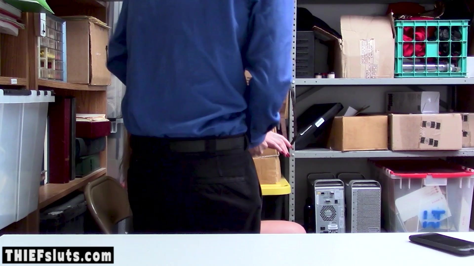 Nervous blonde teen employee Daisy Lee with big boobs gets caught and strip searched by a perv LP officer who orders her to suck his big cock then he is fucking her shaved pussy hard