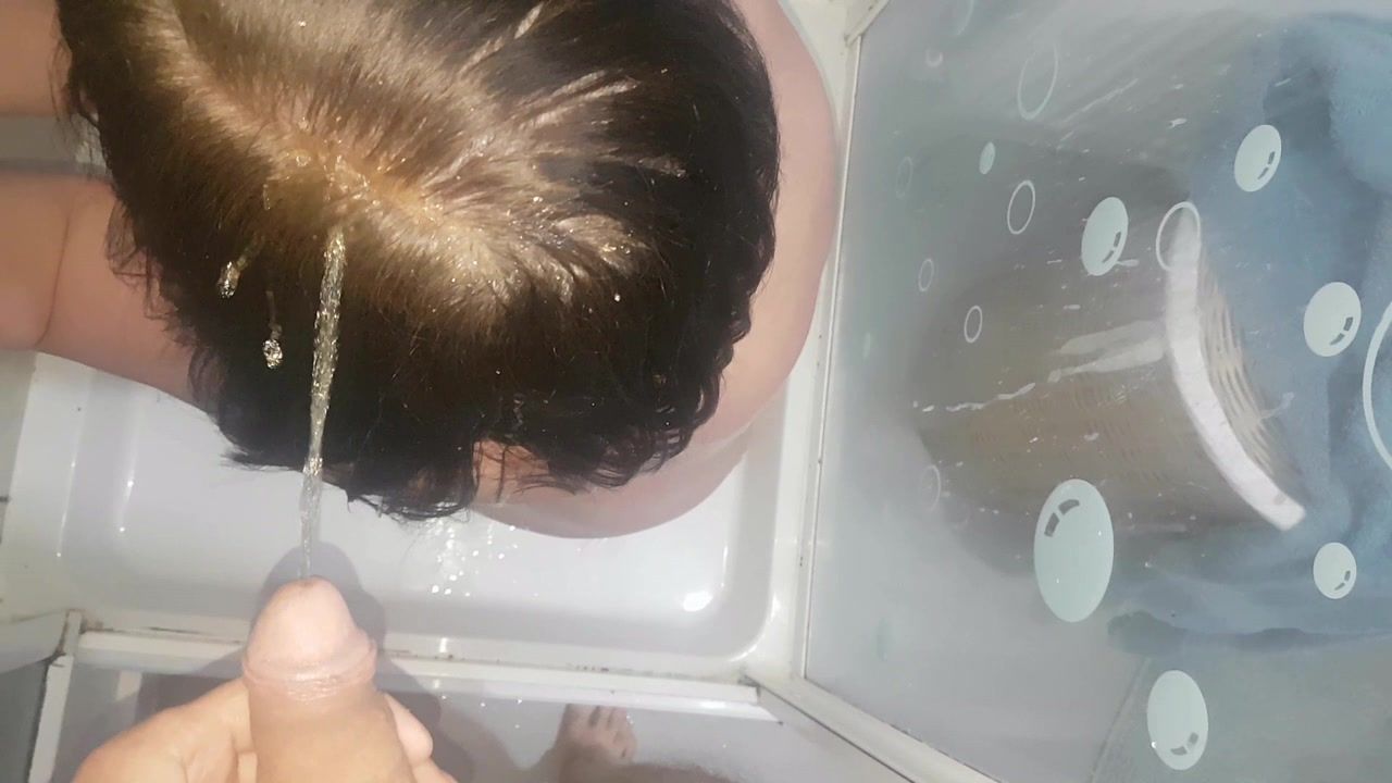 Guy pissing all over milfs tits and hair