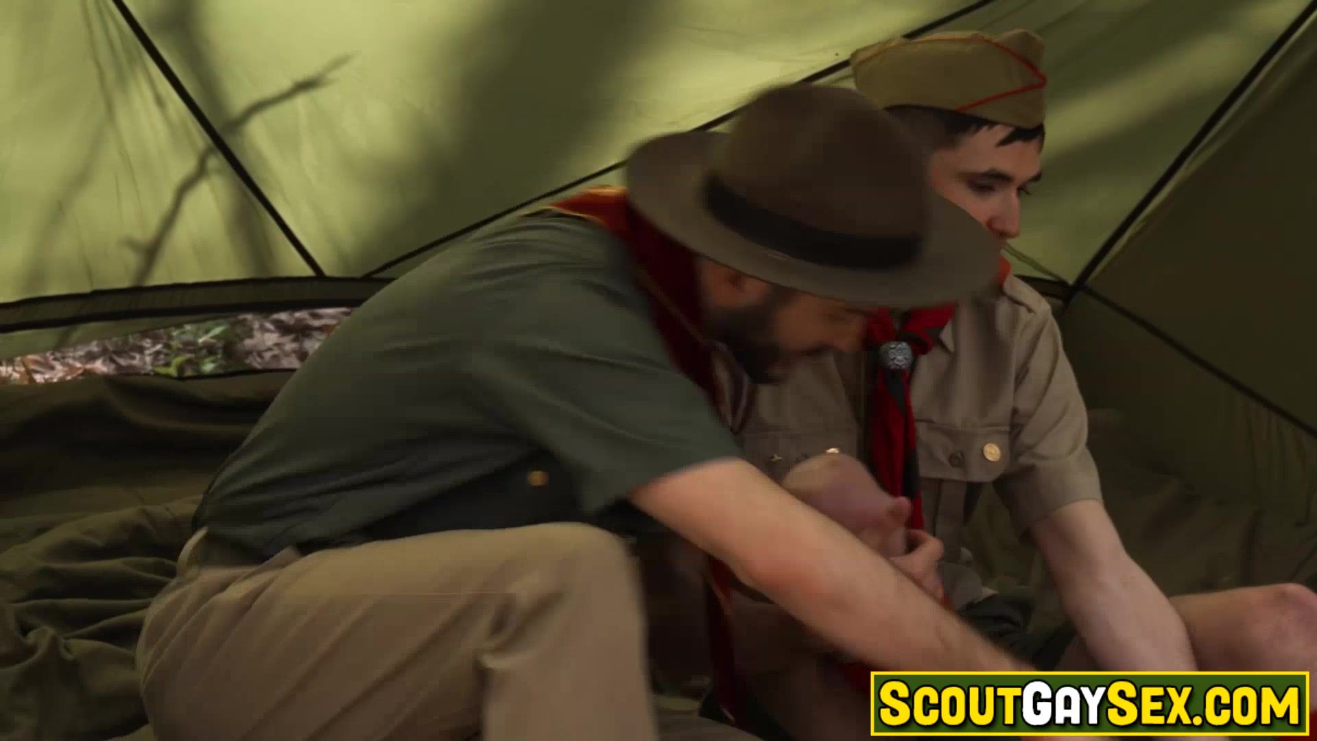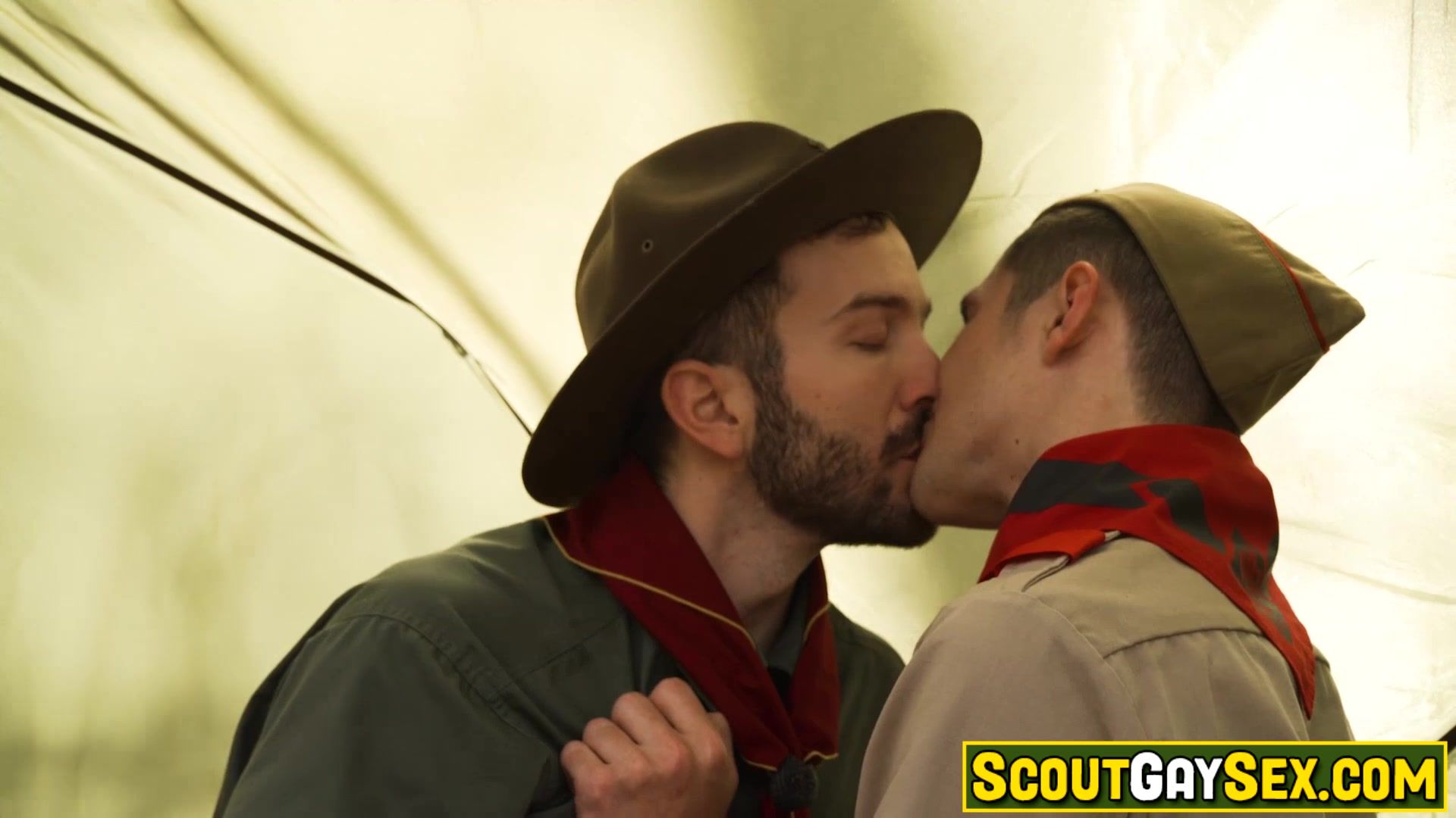 Master Tucker Barrett and scoutboy Nathan James walked to pitched their tent in a clearing which smelt of pine trees. They start kissing and moved to the tent, making out with even more intensity. Tucker ran his big, hairy hands up and down to Nathan body and unbuttoned Nathan shirt