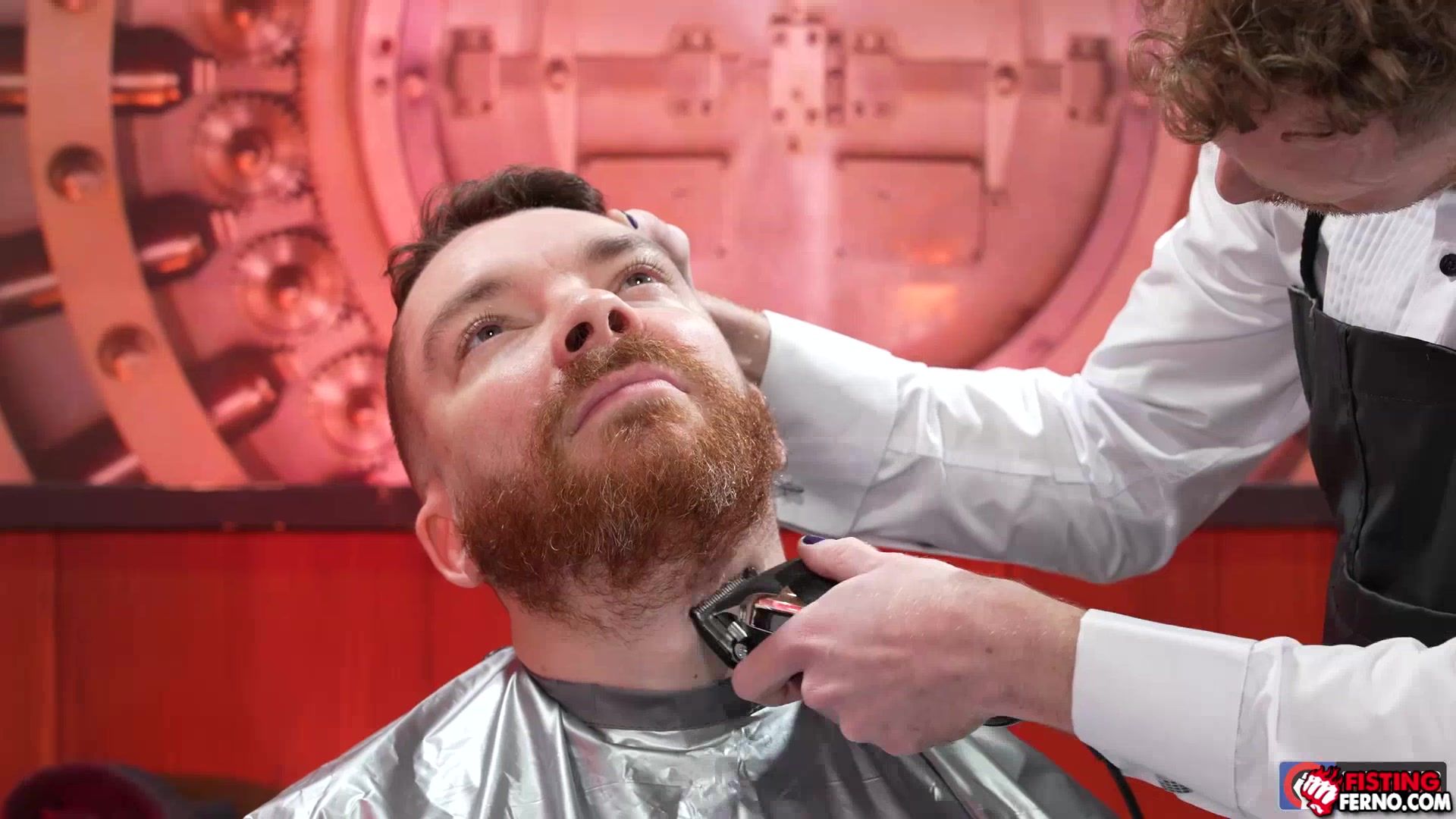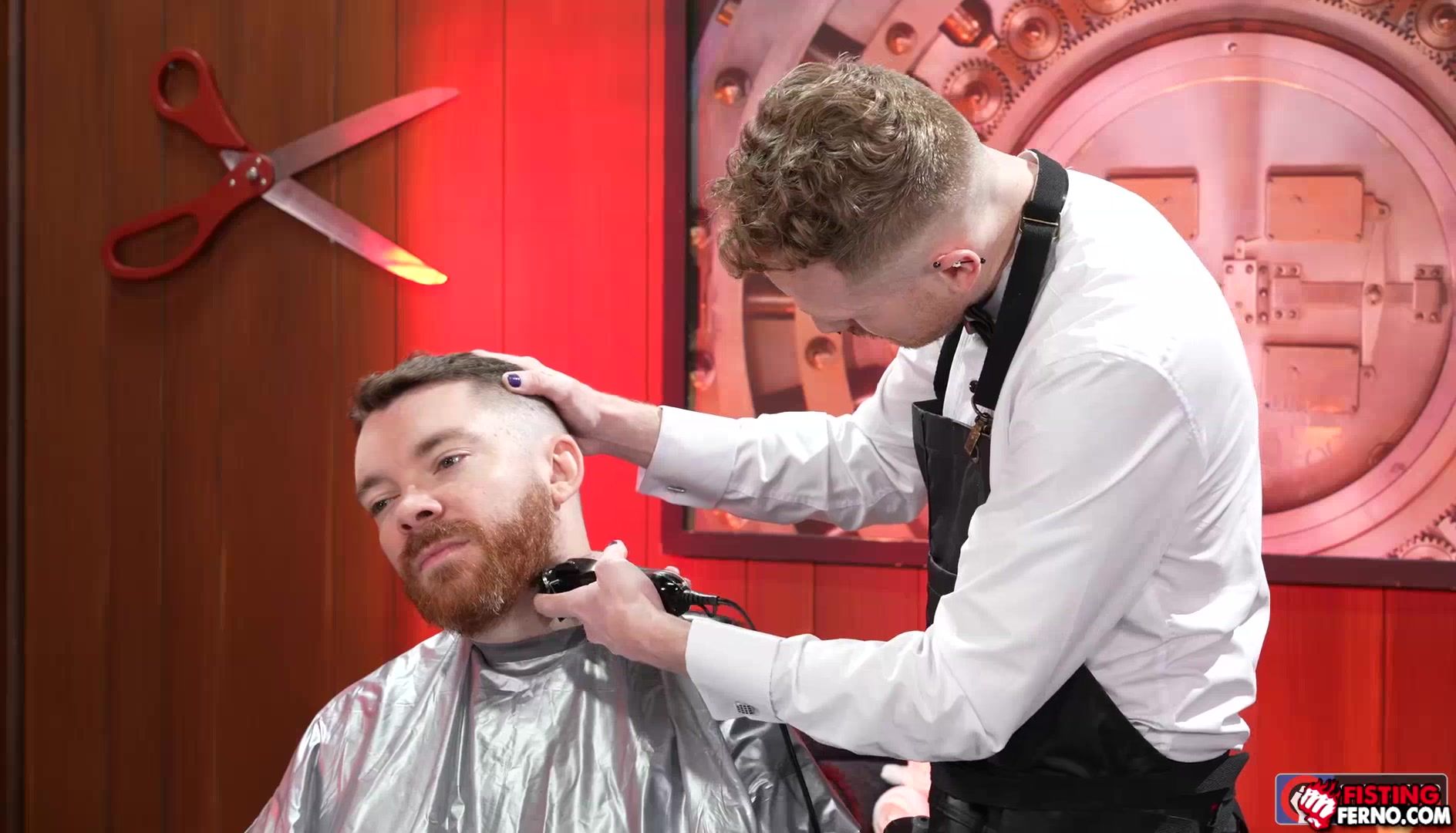 Nathan Daniels visits a barber shop which Logan Bells is the one who will do the hair cut. After cutting his hair he bend over to trim his hair in his ass. Logan got hard and put his fist inside Nathan's ass. He got satisfied and happy and keeps on putting his fist in and out many times