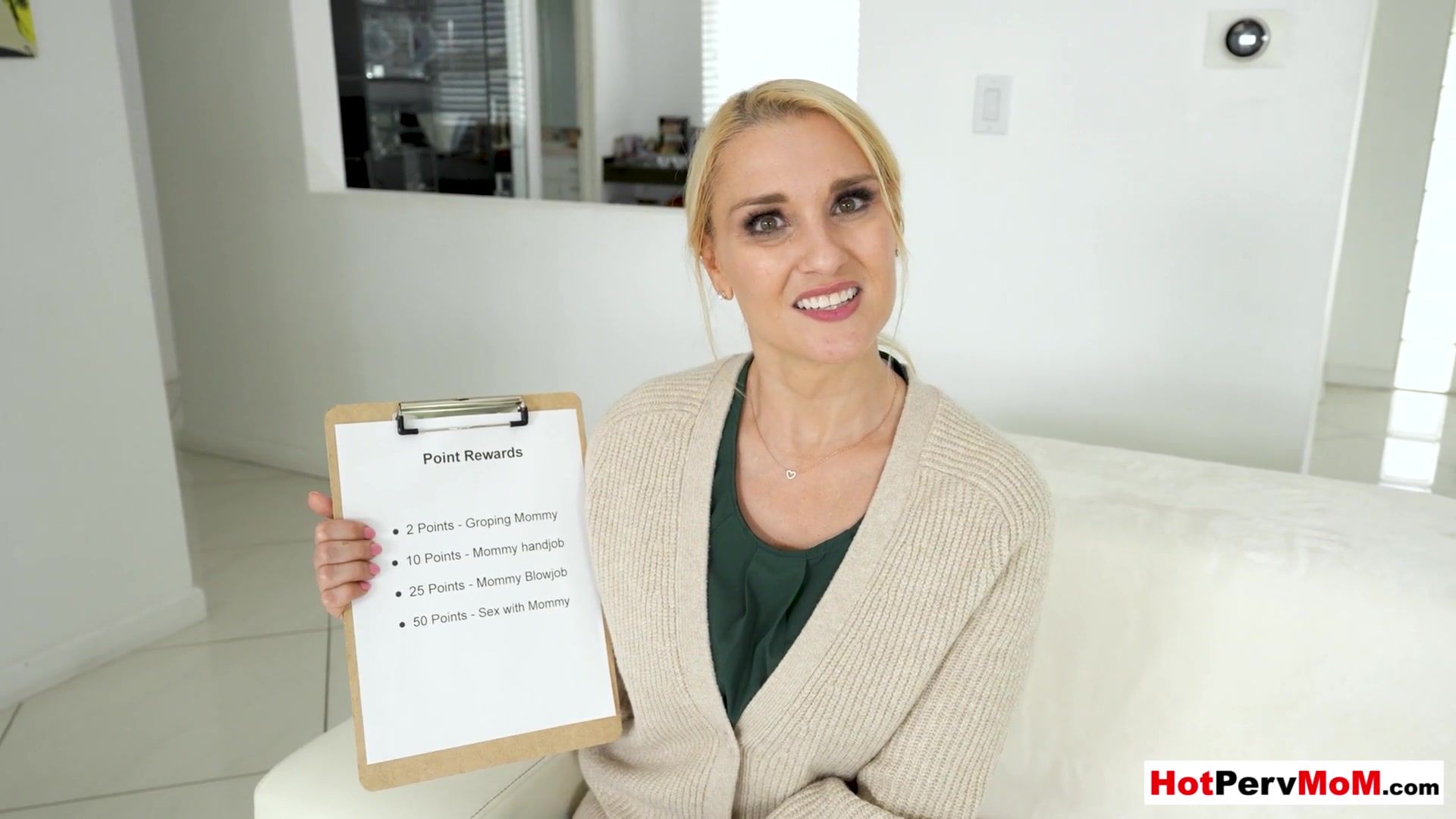 Naughty blonde MILF stepmom Julia Robbie with big boobs figures out a reward system for her stepson He has to clean the house to earn points exchange taboo sex She flashes her tits and starts masturbating then grabs his big cock to give him a blowjob