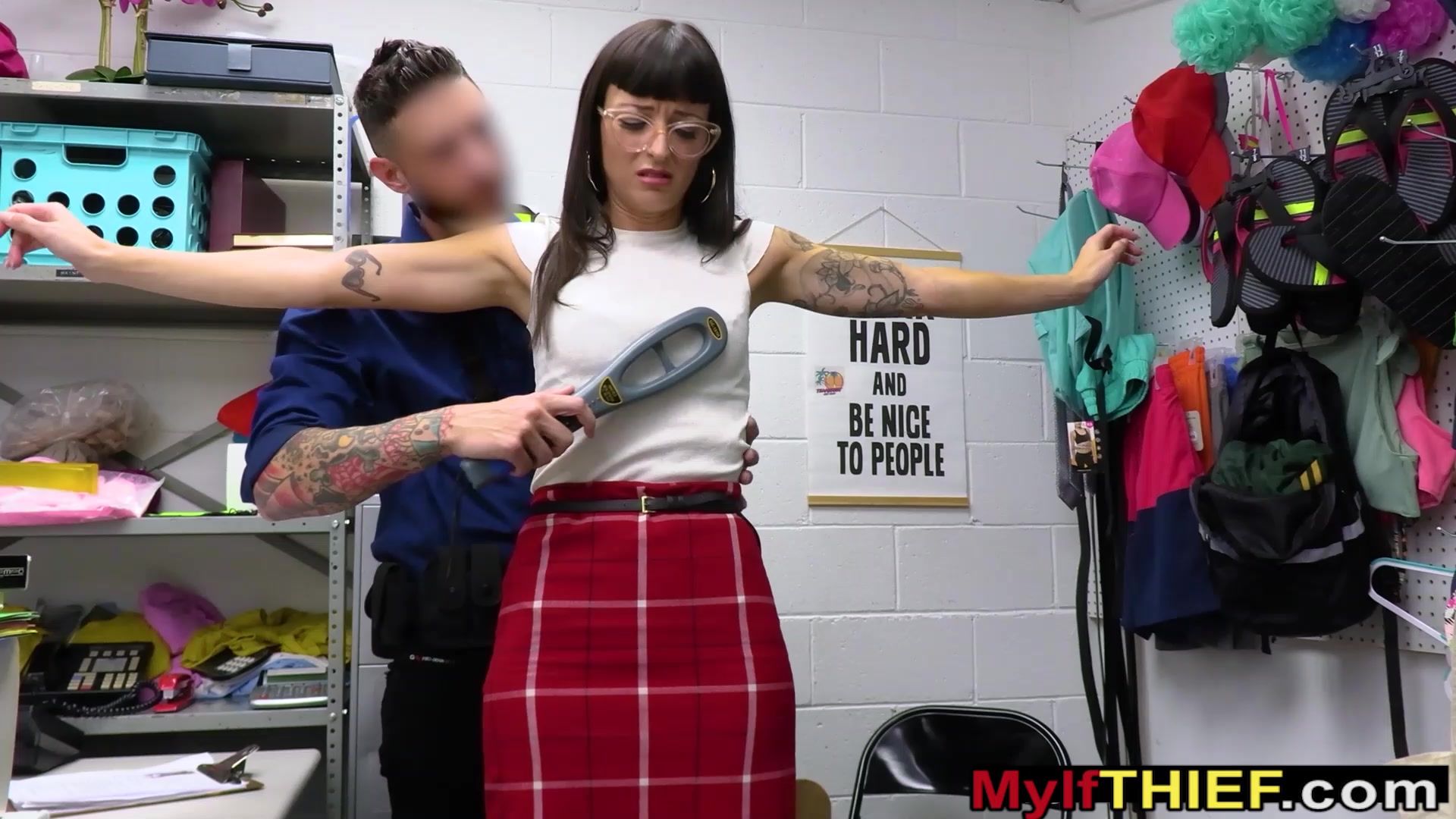LP officer is questioning a bespectacled MILF thief Charlie Valentine with tiny tits when he discovers that she is his stepsons teacher The slut takes his big cock and after a deepthroat blowjob she lets him to fuck her roughly to keep his mouth shut