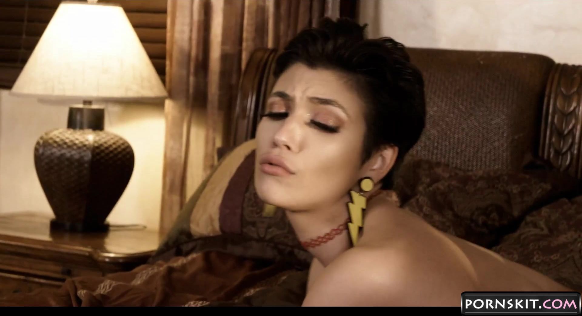 Brooklyn Gray Glamour Short Black-Haire Natural-Titted Babe Pussy and Butt Reamed by Quinton James