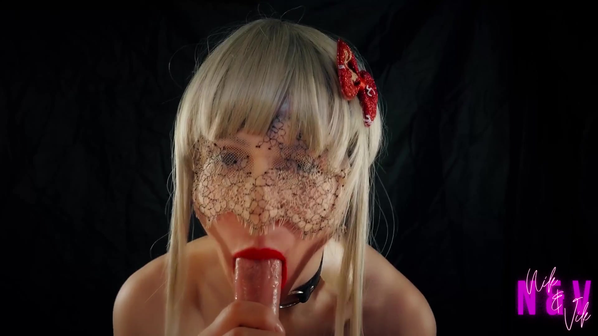 Spunky blondie with crimson lips makes un-fucking-real oral job and hand-job