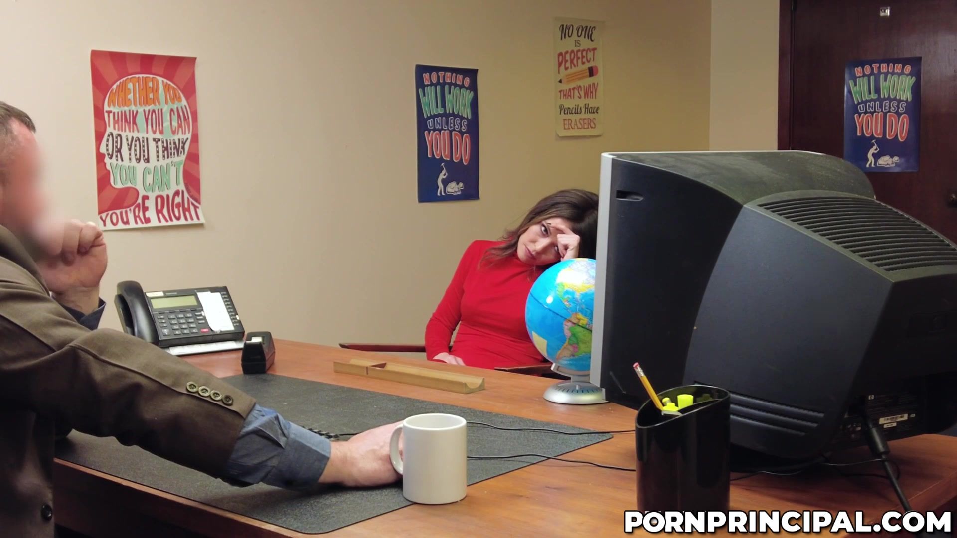 Desperate mom Tiffany Fox piss in principal Sergeant Miles' mouth during a heavy orgasm and swallows his fat cock in a brutal face fuck among other submissions in order to rescue her son from expulsion!