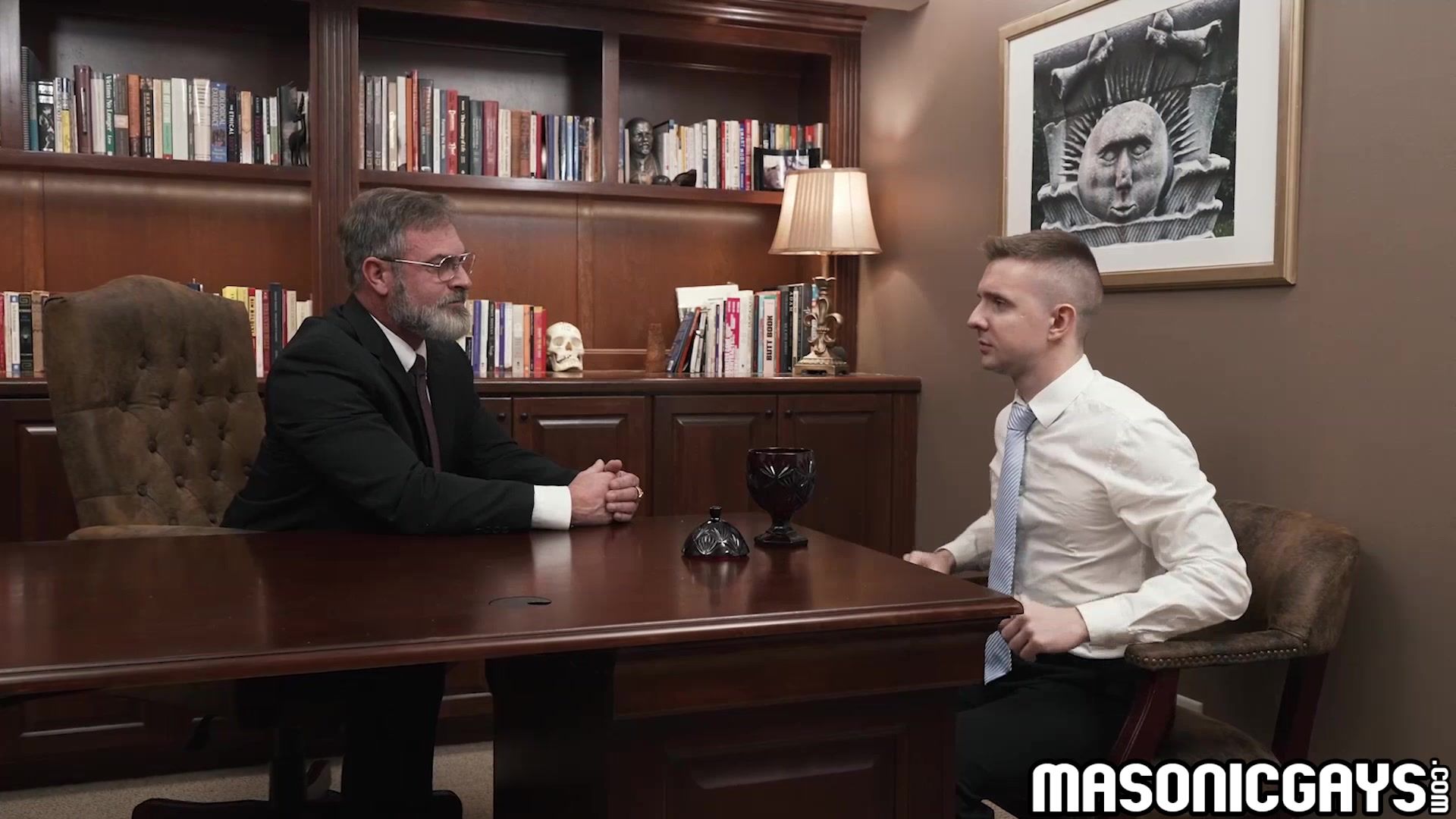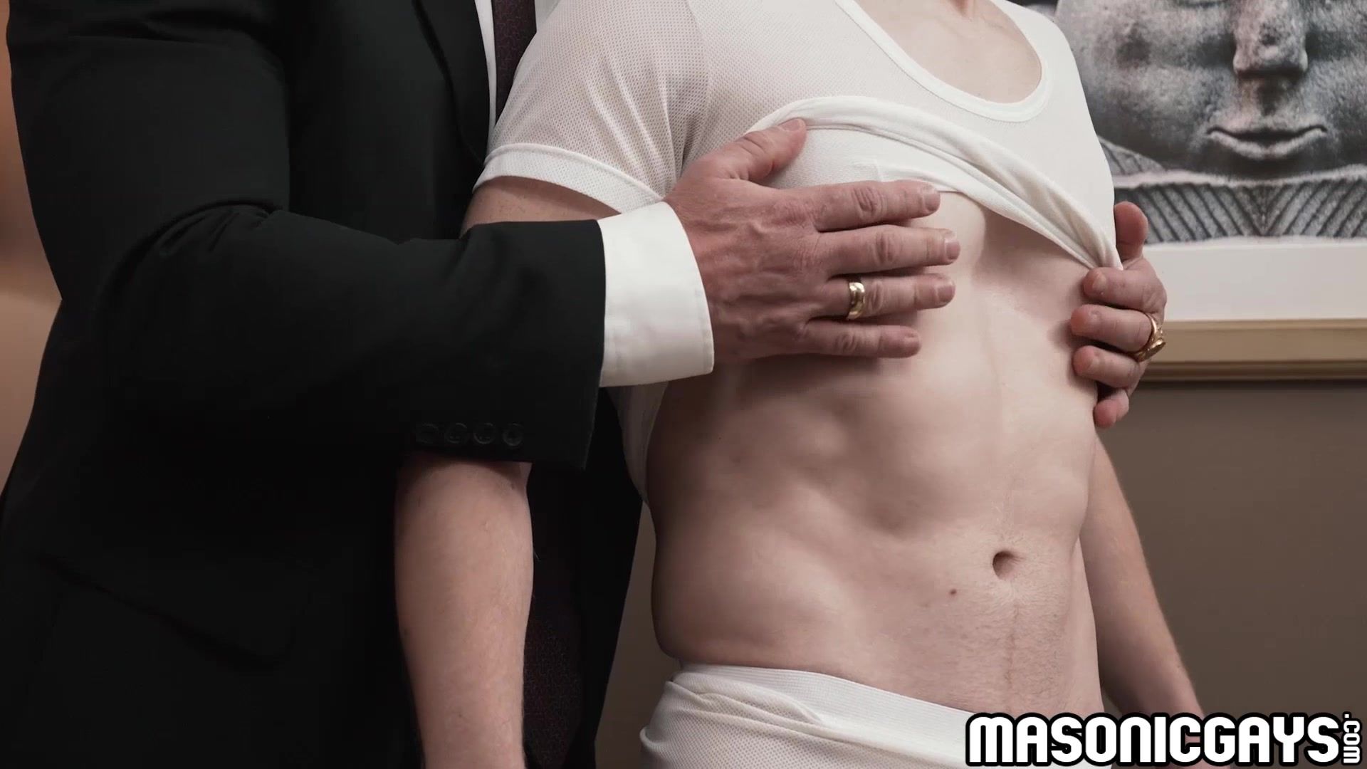 Kristofer Weston moved towards Serg Shepard and started to touch all over his body with just his fingertips. With Weston touch Serg's dick got harder, He instructed Serg to climb onto the desk so he can start fingering and licking Serg's ass and balls. After that he fuck Serg doggystyle harder.