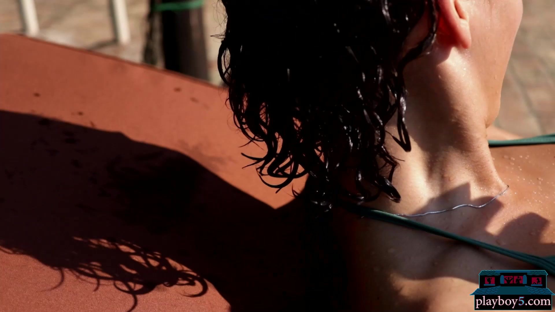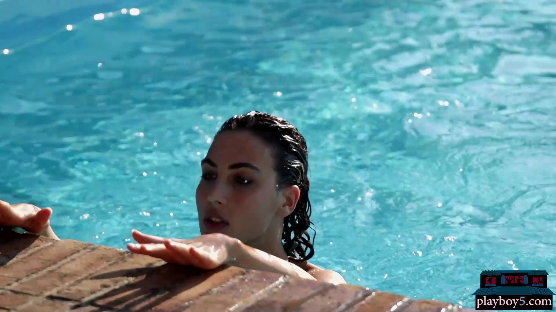 Big ass and natural tits Italian MILF Gena Miller outdoor bikini striptease and dipping that super hot body of hers in the pool for Playboy! This gorgeous European babe shows off all her beautiful curves and she looks super hot doing so!
