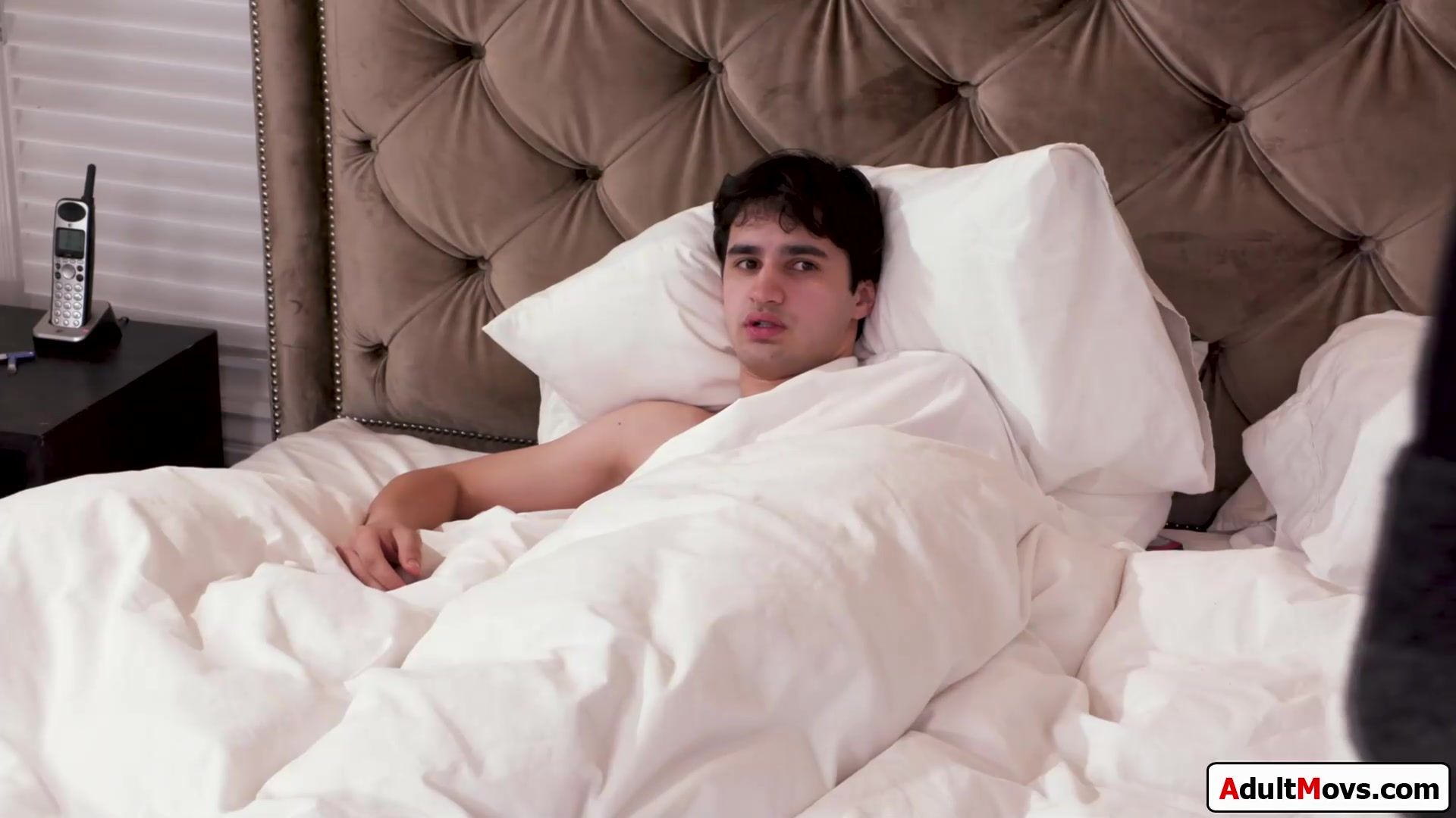 Busty petite euro cougar stepmom pulls away the blanket to reveil her stepsons big hard boner.The big tits brunette milf grabs his cock and gives him a handjob before deepthroating him.The teen sucks his stepmommys boobs and anal fucks her tight ass
