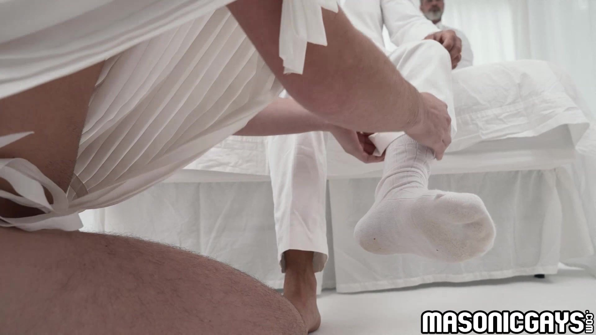Chase Tyler goes to the white room where DILF's Adam Snow and Kristofer Weston waiting for him. Adam ordered Chase to come near him and start obeying him with his rituals which Chase understand it all. Chase give Adam a blow while older Kristofer watching them even while Adam fucking Chase