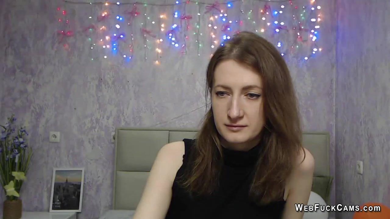 Brunette amateur in black on webcam