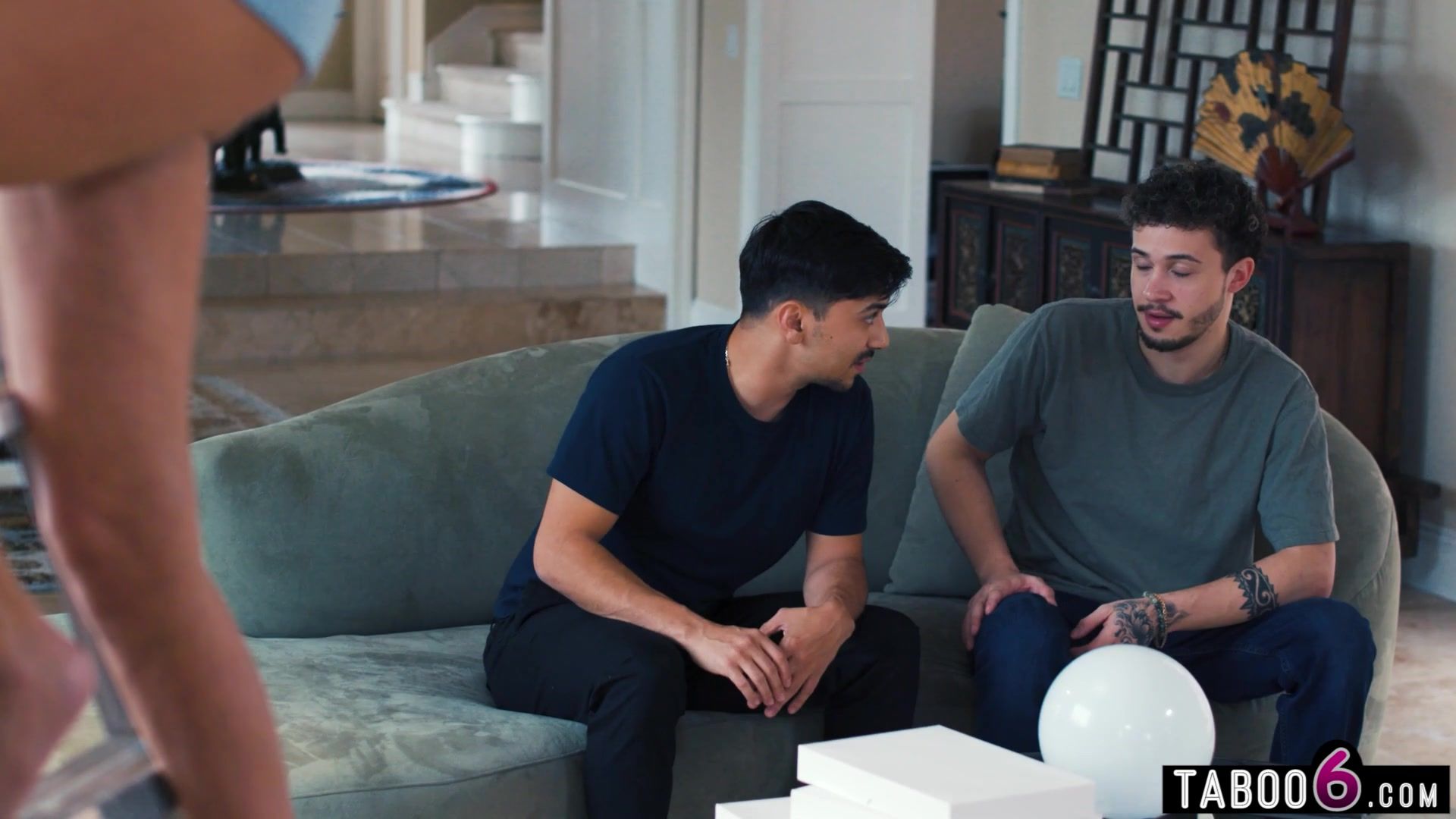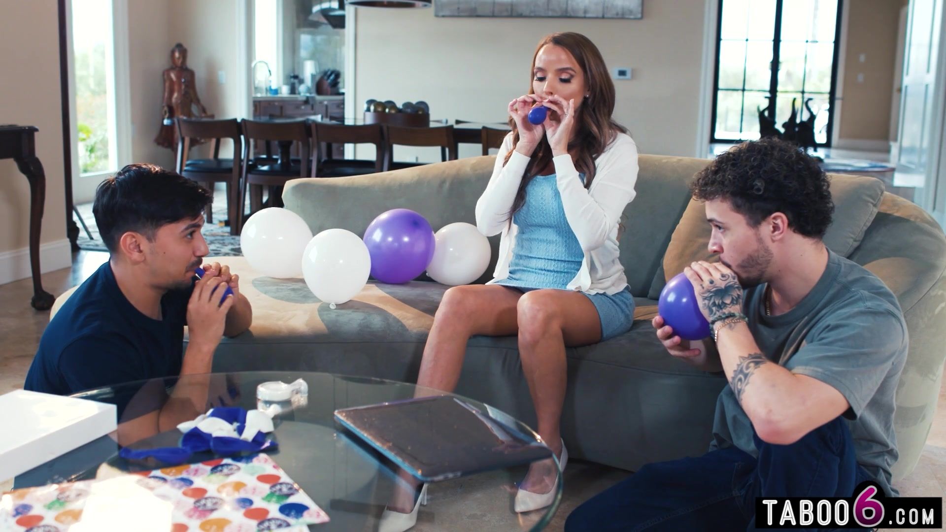 Upskirt with no panties MILF stepmom Pristine Edge had stepson and friend going loco so they made a move on her and it turned into a hot threesome! His step mom was super hot and they way she took those young big cocks was just amazing!