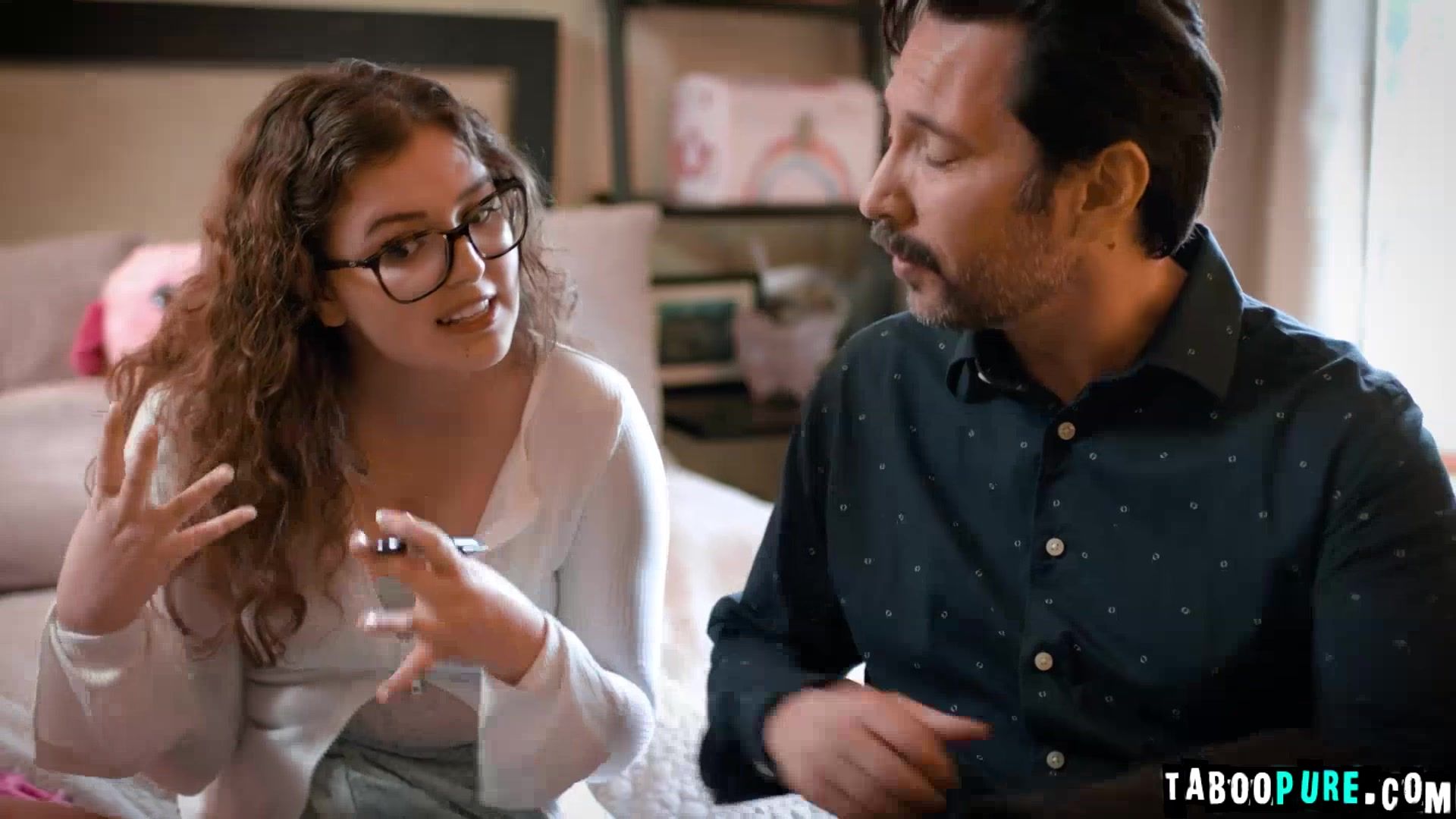 Tommy Pistol an administrator arrives at the house of Leana Lovings. Leana is happy to see Tommy, because she secretly has a crush on him. They towards her bedroom where they start seducing, kissing and fucking each other until older guy Tommy is very satisfied