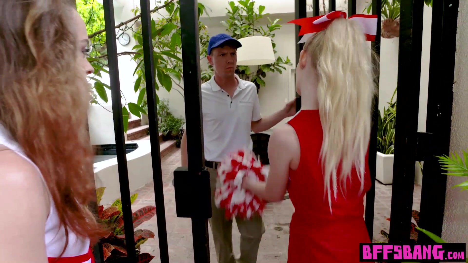 Hot ebony teen cheerleader Gia Gelato and her petite teen BFFs Emma Starletto and Lily Glee in sexy uniforms visit their new captain to introduce their skills They grab his big cock in the garden outdoor to suck and fuck the huge meat